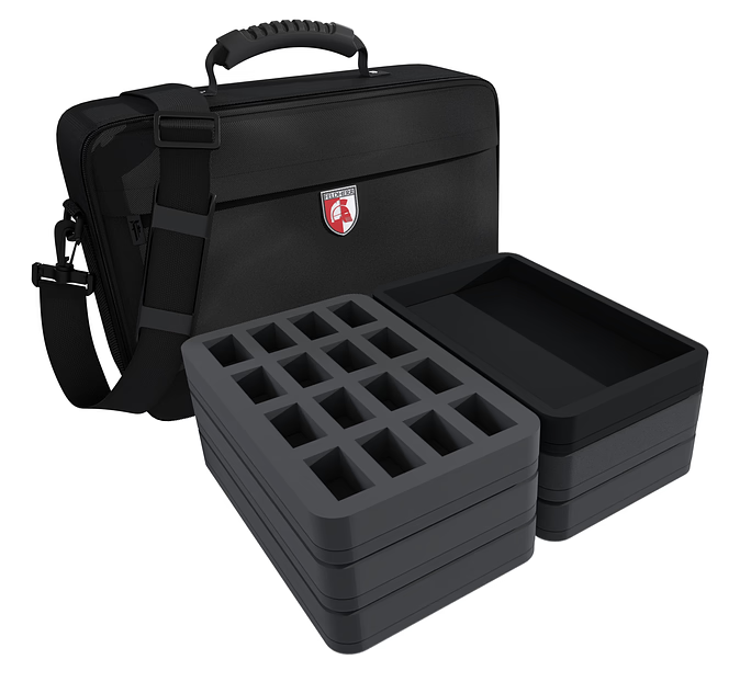 With the MEDIUM bag including Feldherr foam trays, all miniatures and the entire game material from the core game are safely and neatly stored. There is also space left for additional miniatures.