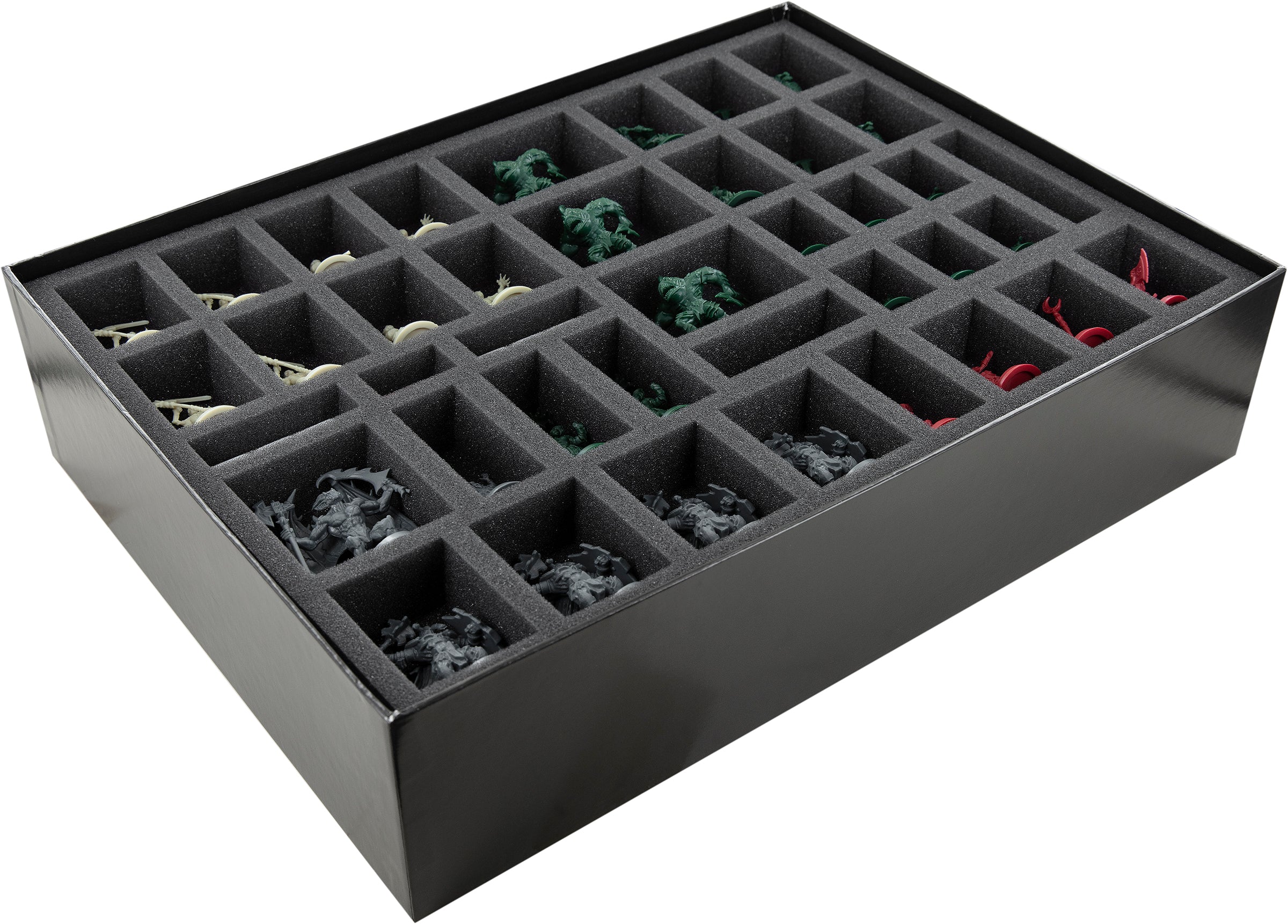The custom-fit cut ensures that each miniature sits tight. Even when transported through the most daring dungeons, nothing slips. Vulnerable parts, such as swords, scythes, or wings, are optimally protected from damage. If you have painted your models, you can be sure that the colors are still intact after transport.