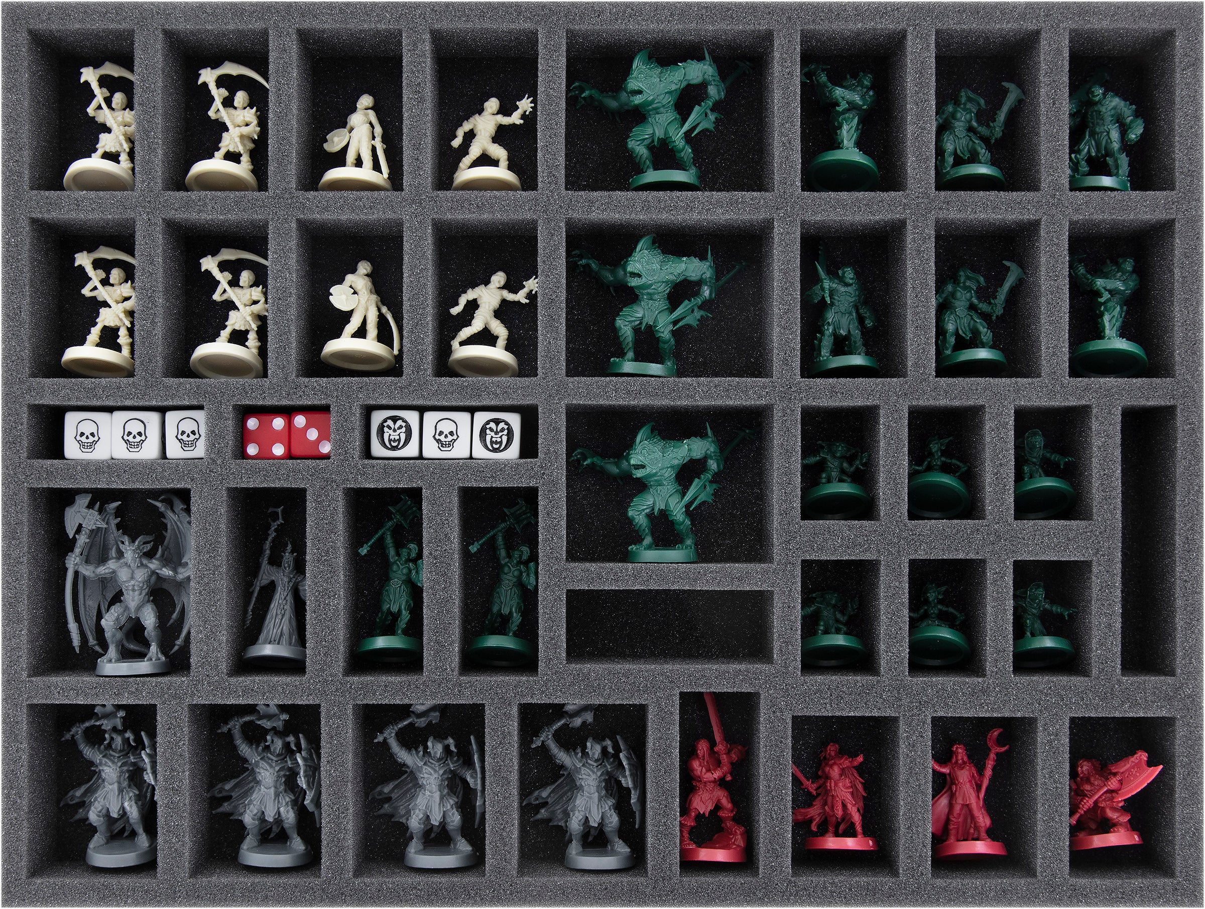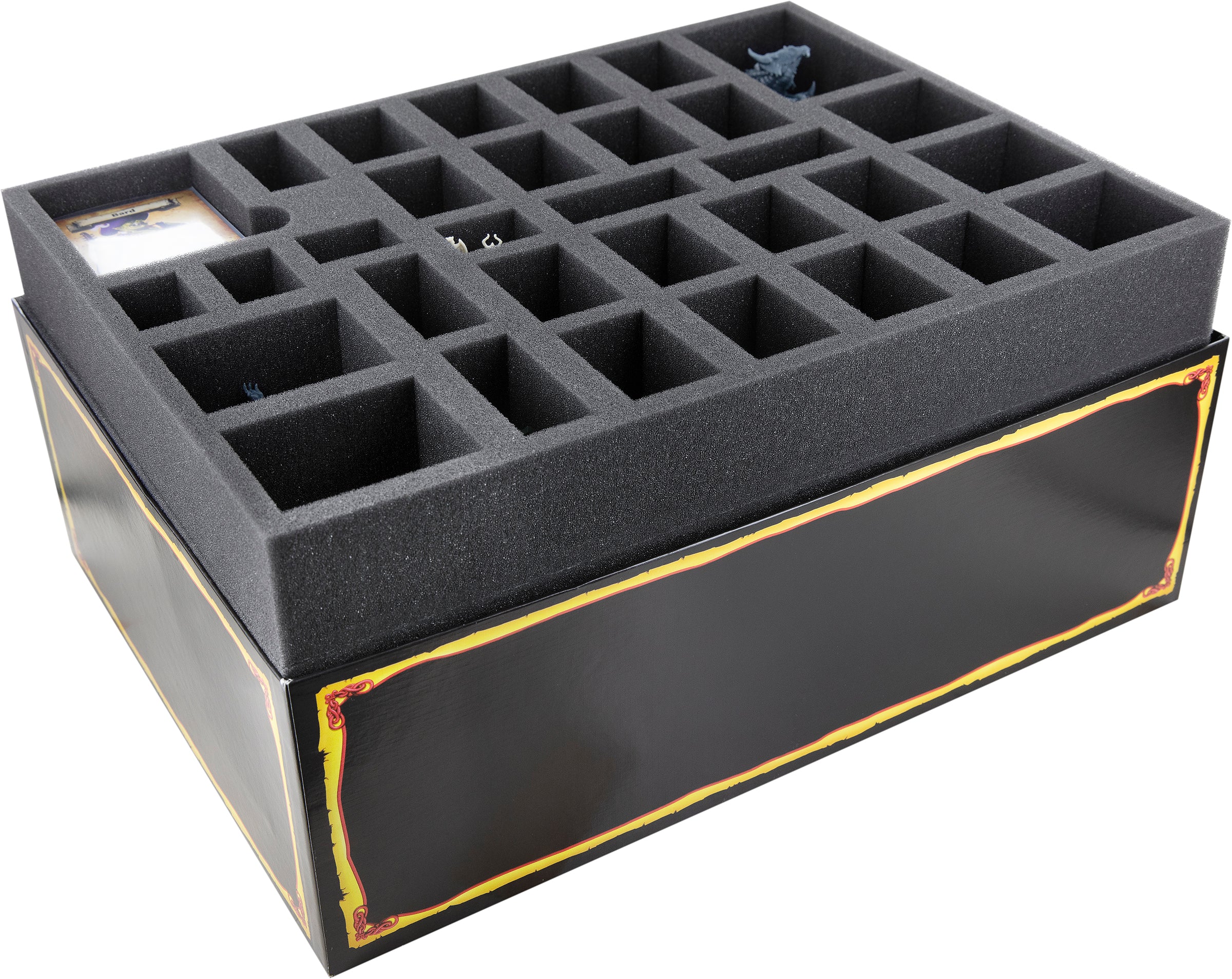 - All miniatures, game cards, and the entire game materials from the core game, the two expansions “Kellar's Keep” and “Return of the Witch Lord”, as well as the additional content from the exclusive Mythic box can be neatly stored in the foam set.