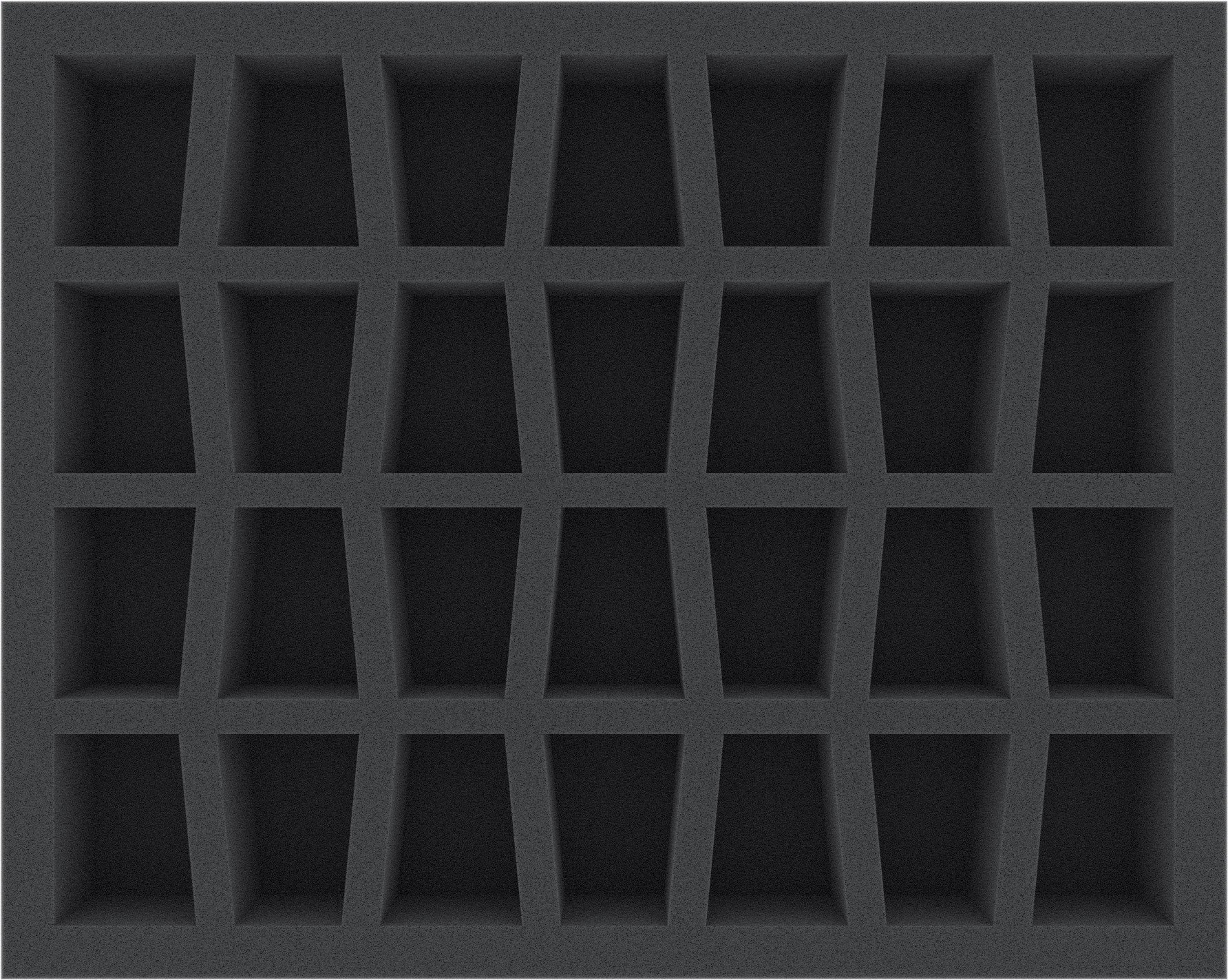 On this Full-Size foam tray you have 28 conical shaped compartments for bigger sized miniatures. The miniatures on 40 mm bases fit particularly well in foam compartments.