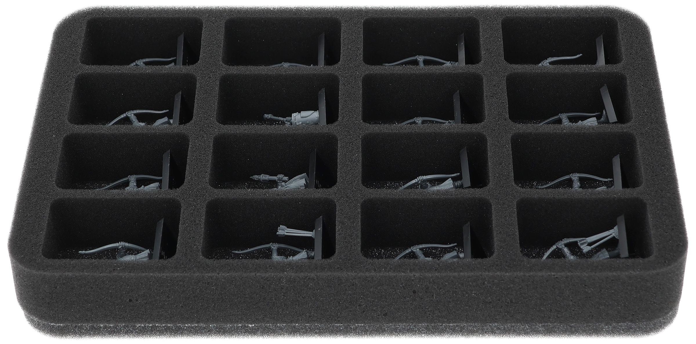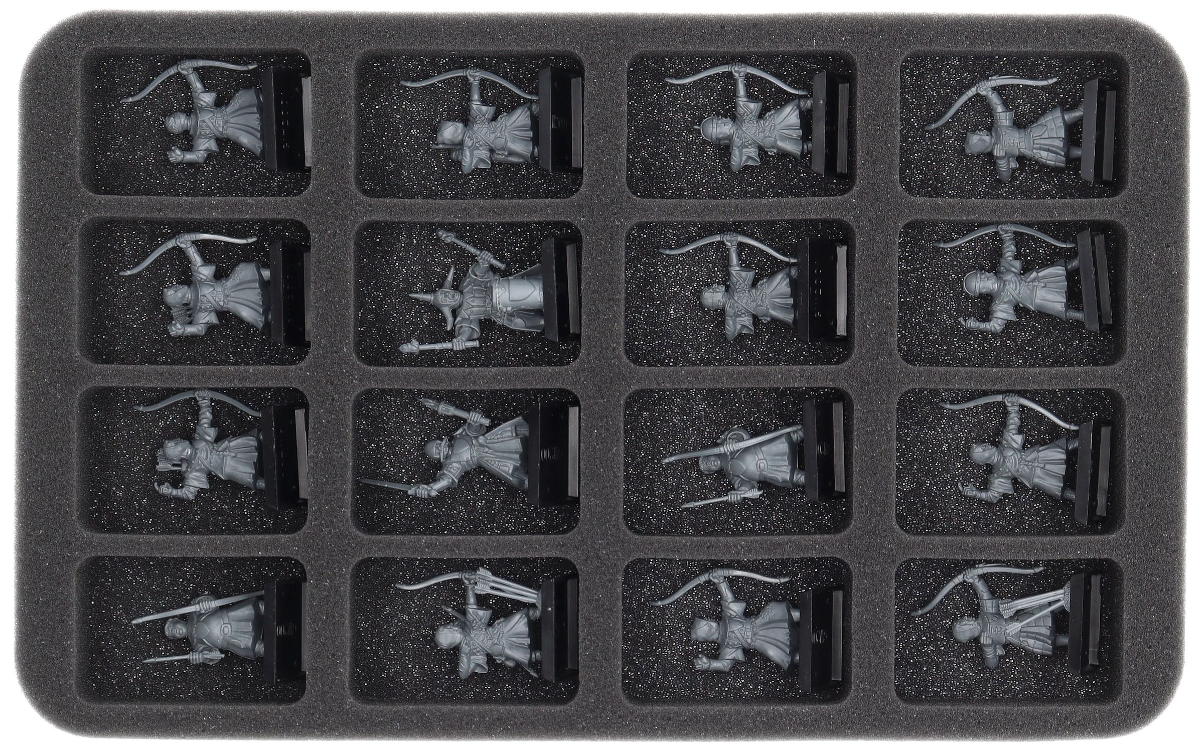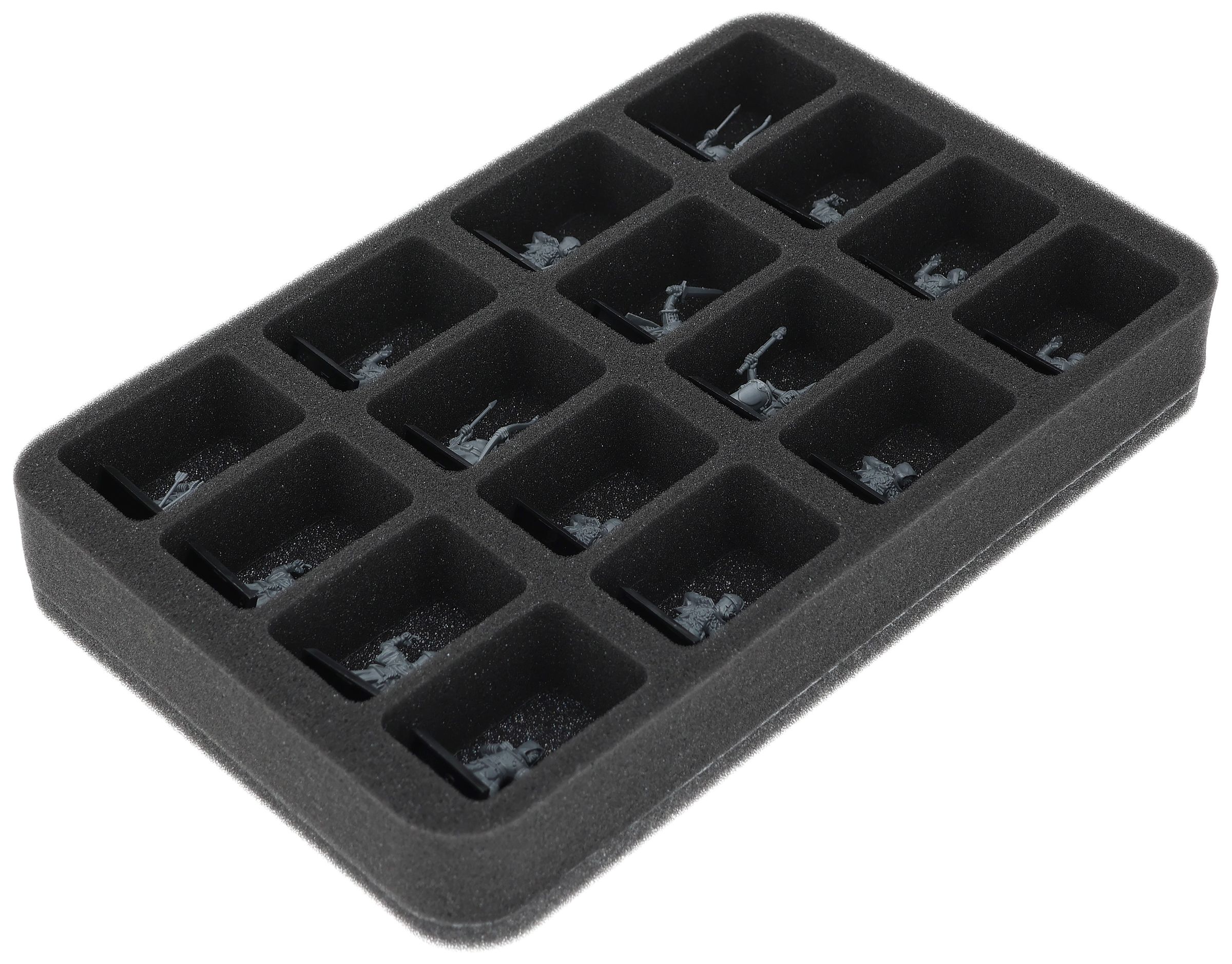 On this Feldherr foam tray you have space for up to 16 miniatures of your army. The insert is especially suitable for storing the Peasant Bowmen and similar sized models.