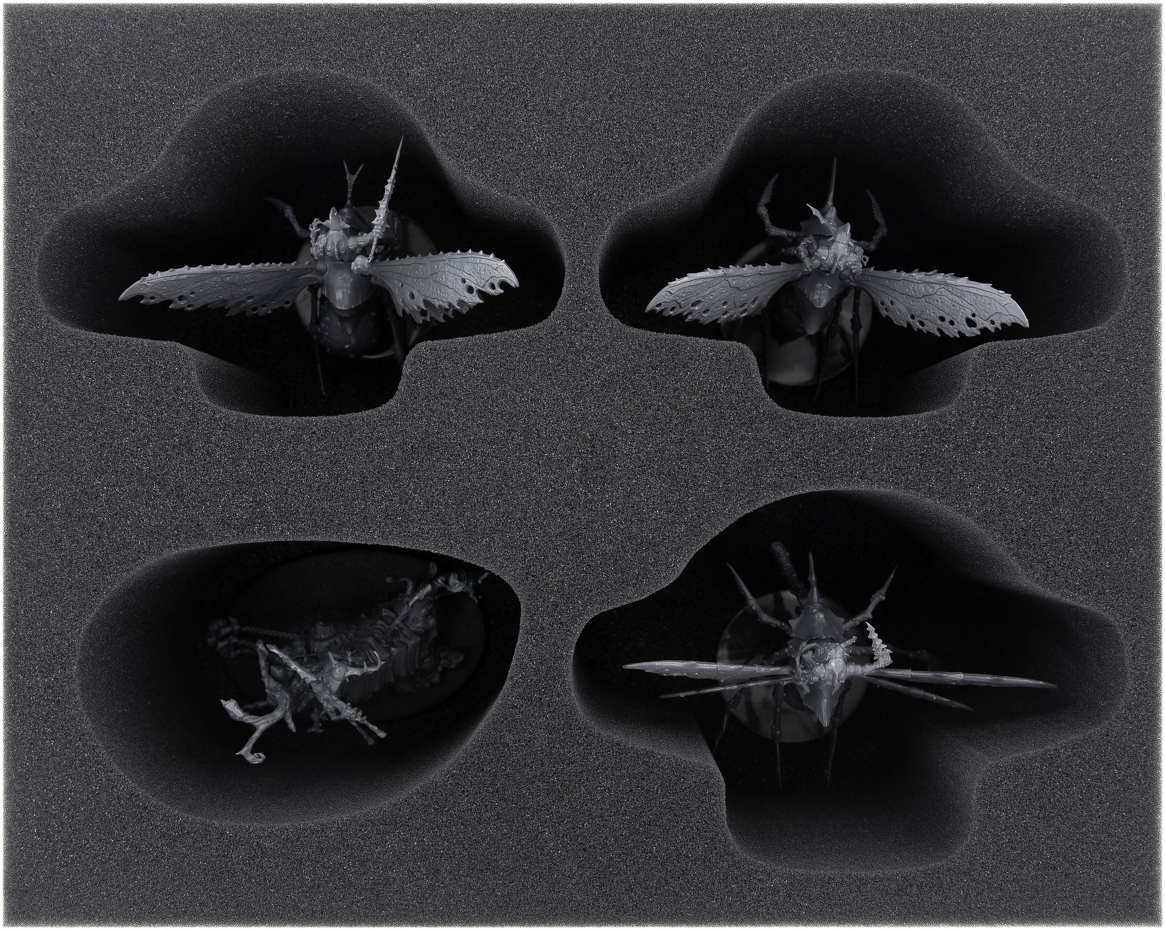 For each of the three Plague Drones, the mat offers a compartment that is exactly tailored to the miniature. Here the models are safely stored. The sensitive parts, such as wings, Plague Proboscis and the blades of the Plaguebearers are optimally protected from damage.