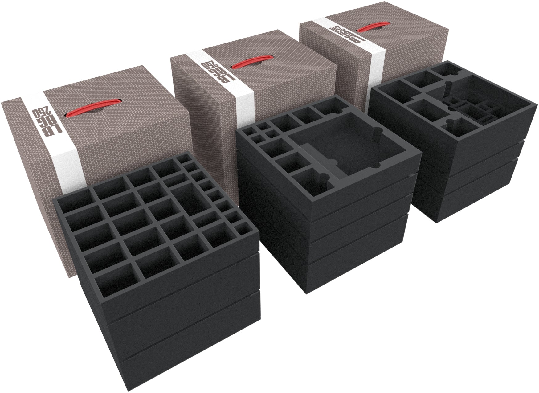 The bundle consists of a total of 3 Storage Boxes LBBG250, filled with the matching Feldherr foam inserts. All miniatures and all accessories can be stored clearly arranged and well protected.