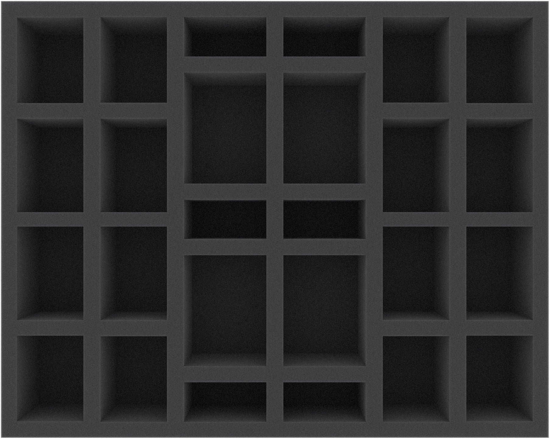 In the 26 compartments of this Feldherr Full-Size foam tray, you can keep your little monster figures and investigators safe. The 20 larger compartments are designed for monster miniatures on a small base, such as the Mi-Gos or Hounds of Tindalos. In the 6 small compartments you can neatly stowe the investigator figures.