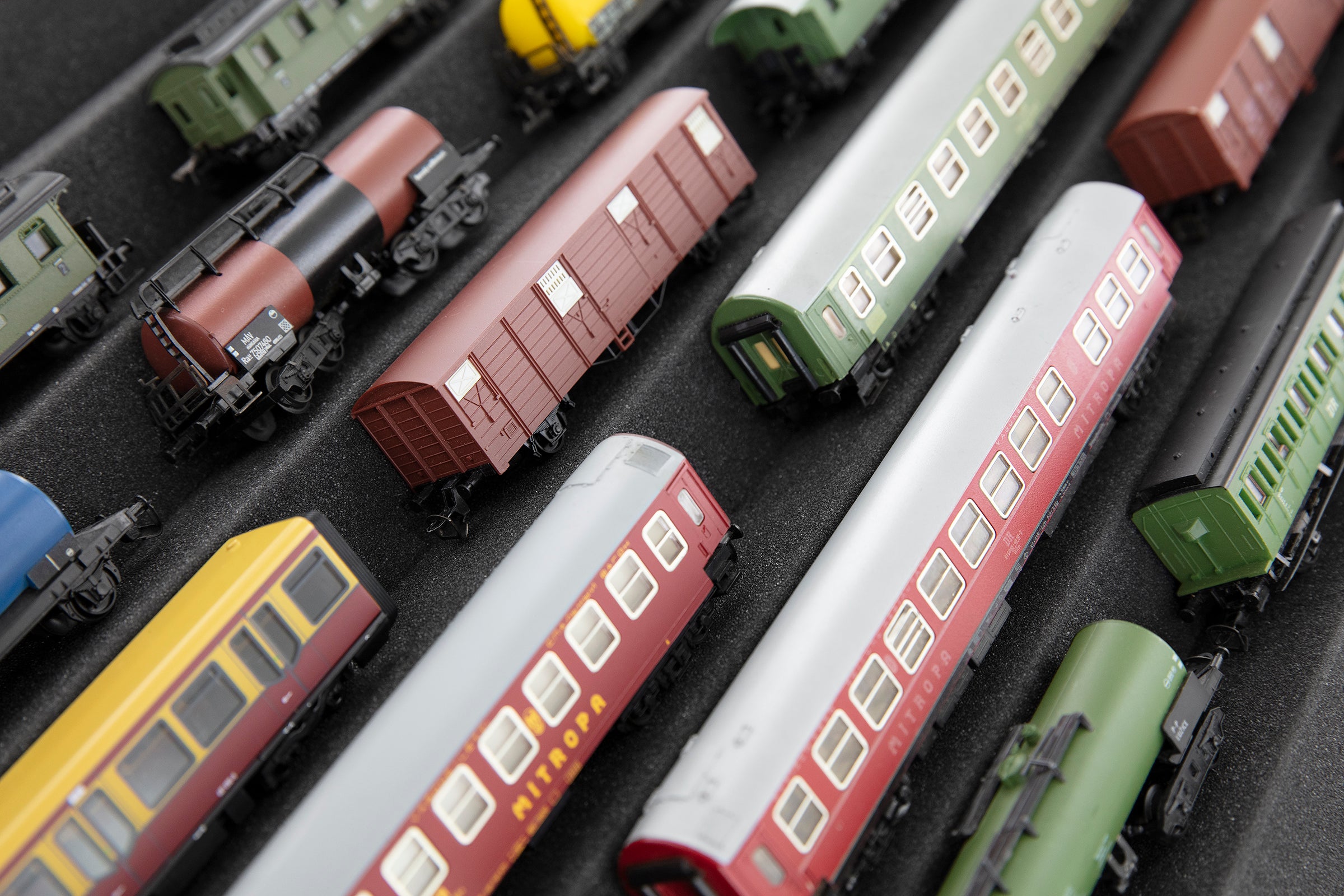 Several trains and carriages can be stored next to each other in one compartment. In order to prevent collision or unintentional coupling, we offer suitable foam spacers (HS025A001).