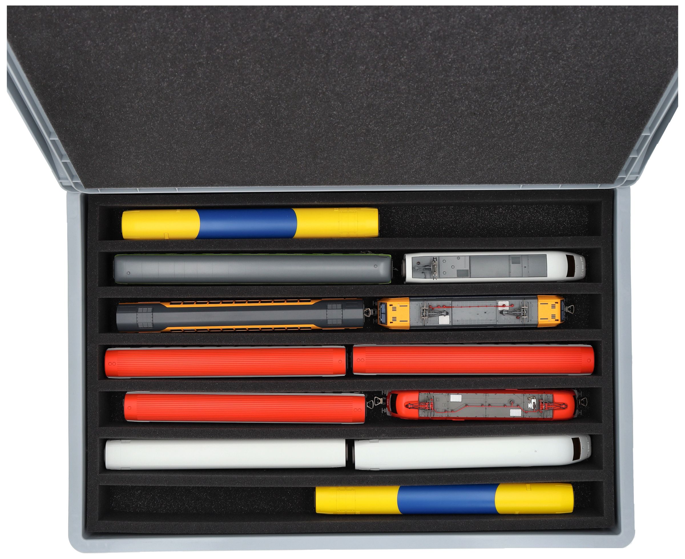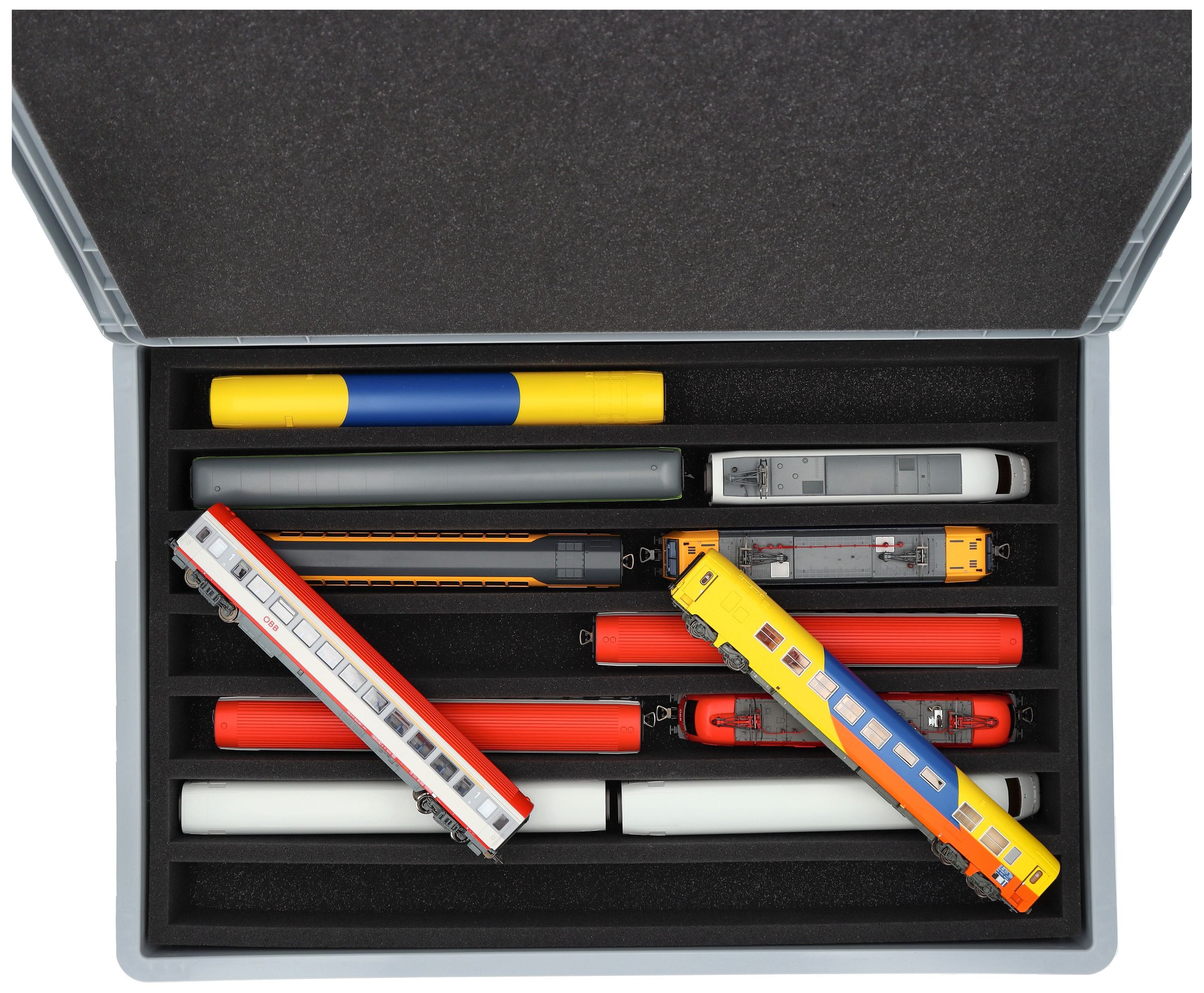 - 7 compartments - foam insert for upright storage of locomotives, wagons and vehicles