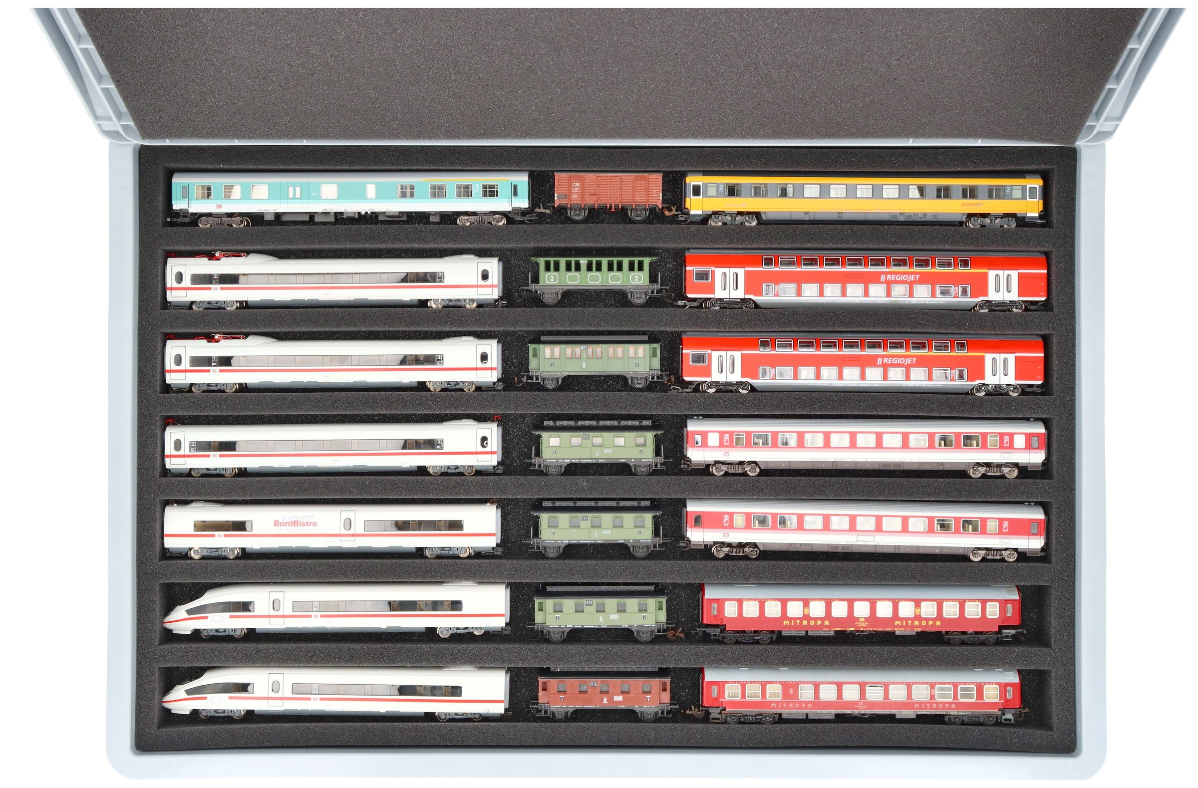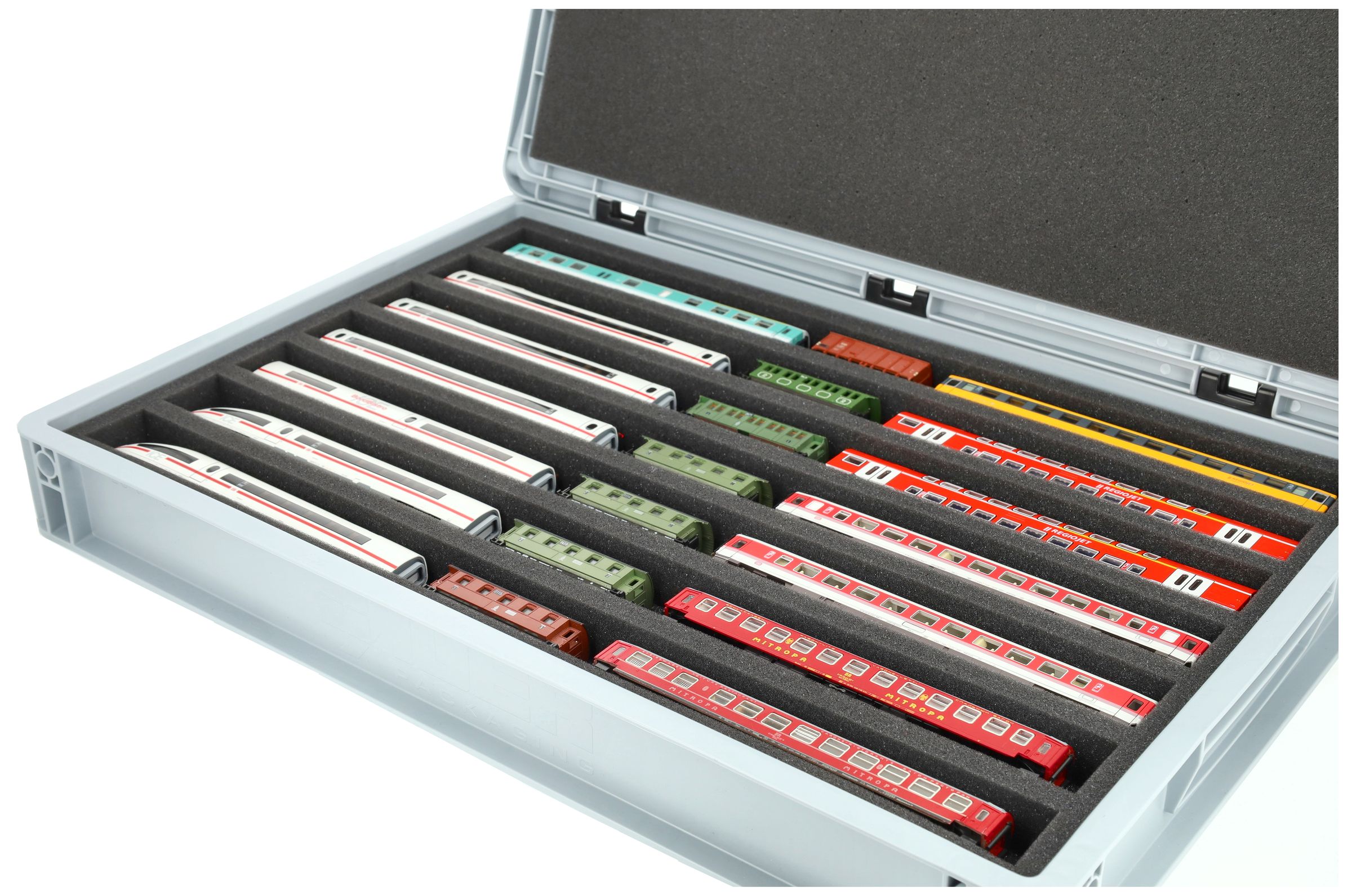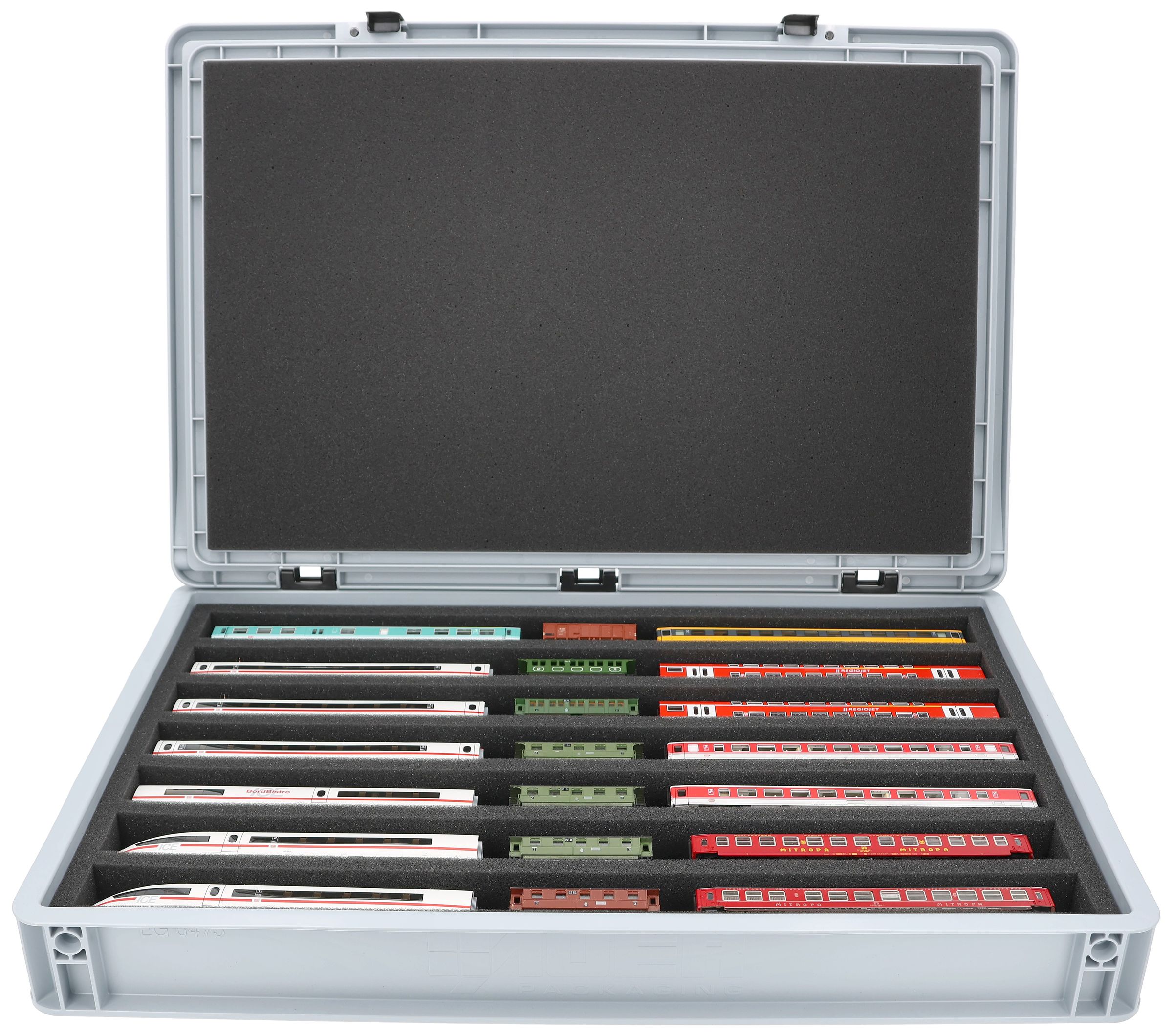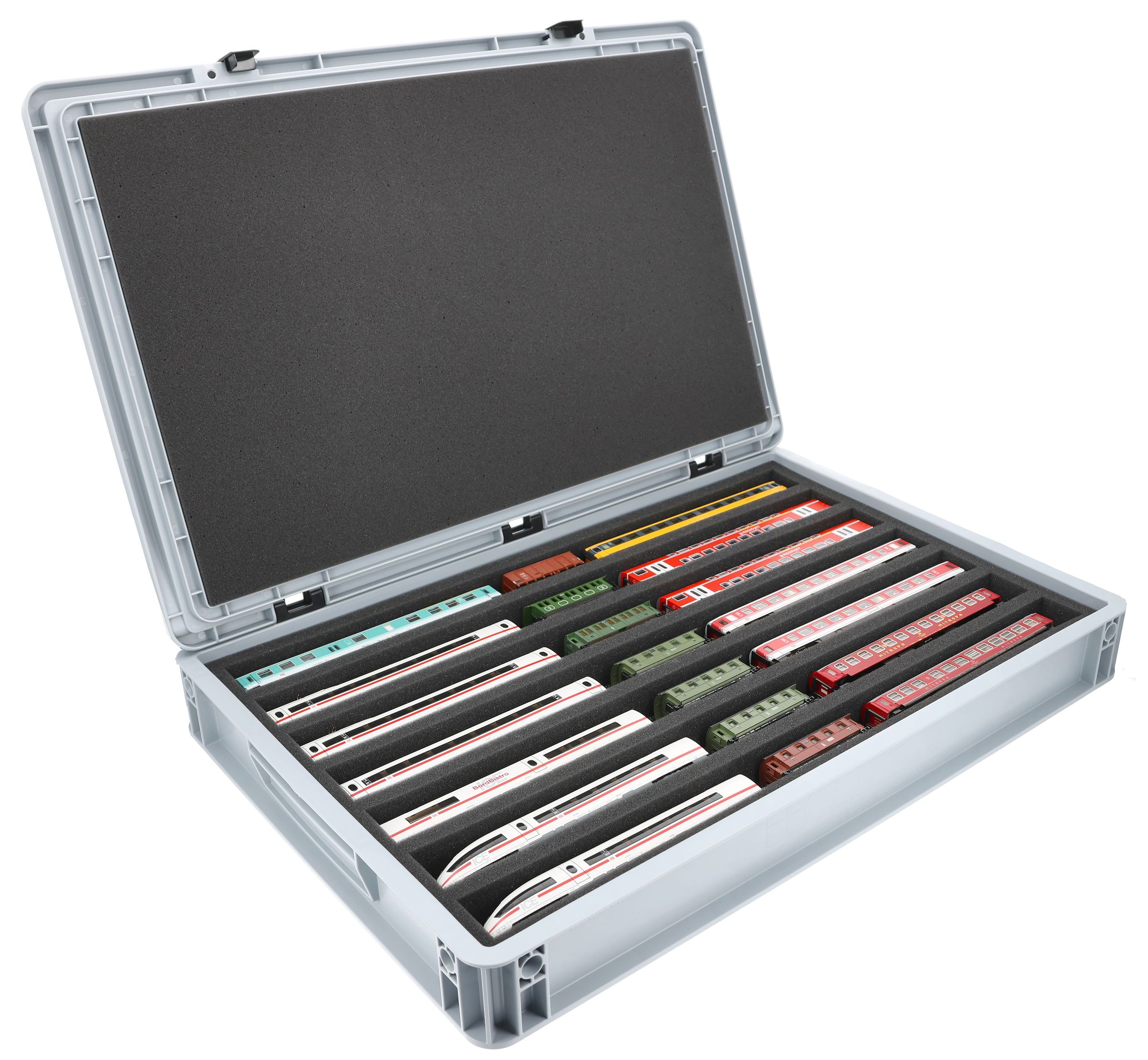 - 7 compartments - foam insert for horizontal storage of locomotives, wagons and vehicles