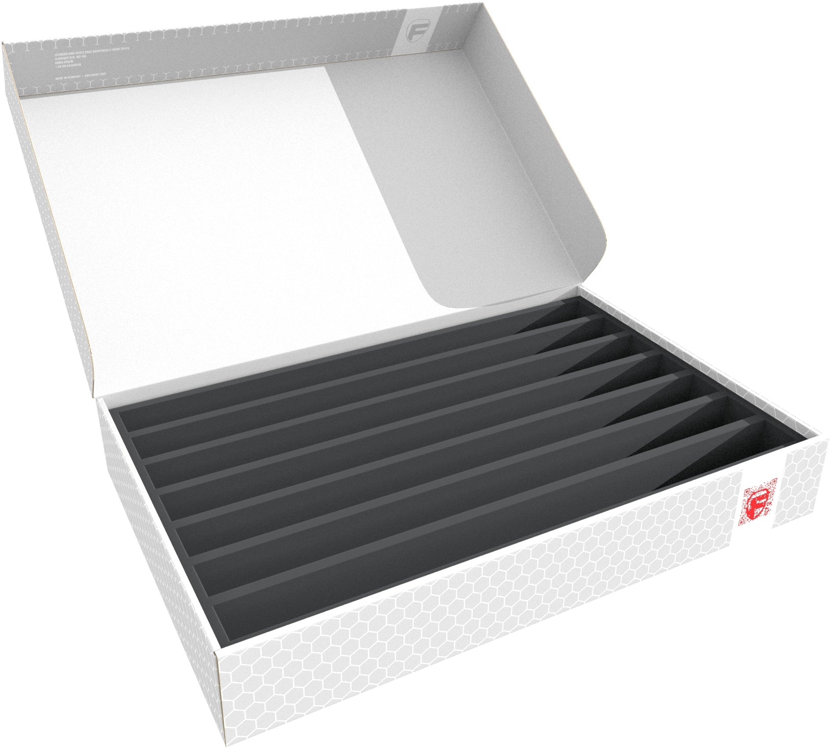 The inlay fits perfectly into the Feldherr Storage Box DSLB075. The box is made of coated, double-walled cardboard. This makes it not only pleasantly light, but also particularly tear-resistant and stable. The models can be stored safely and protected against dust and other external influences. Thanks to the flat, compact form, they are easy to transport.