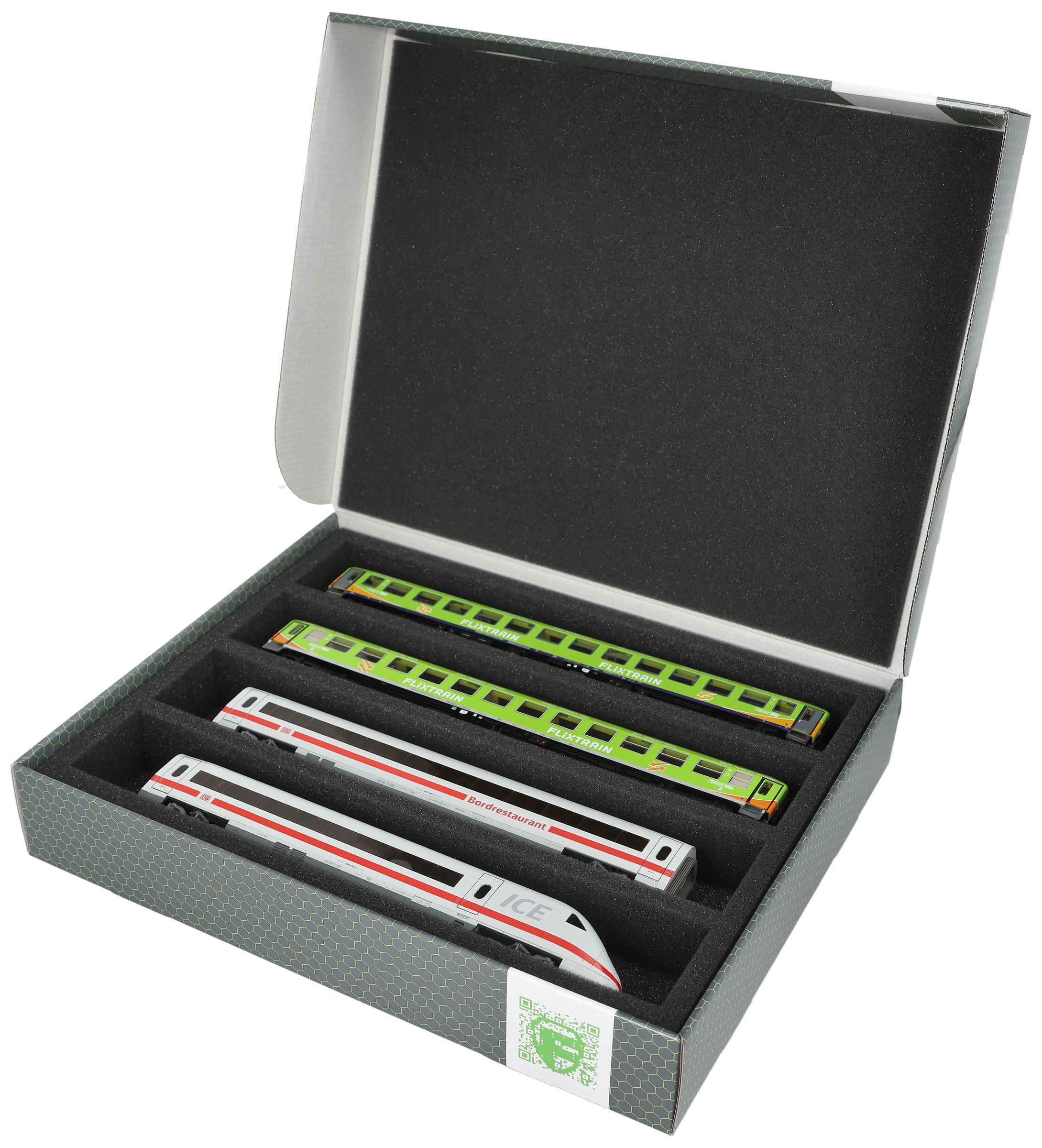 Four compartments, tailor-made for horizontal storage of model railways in Gauge H0, offer your wagons and locomotives reliable protection for storage and transport. Due to the lying position the trays can also be used as a display for the presentation of your model train collection.