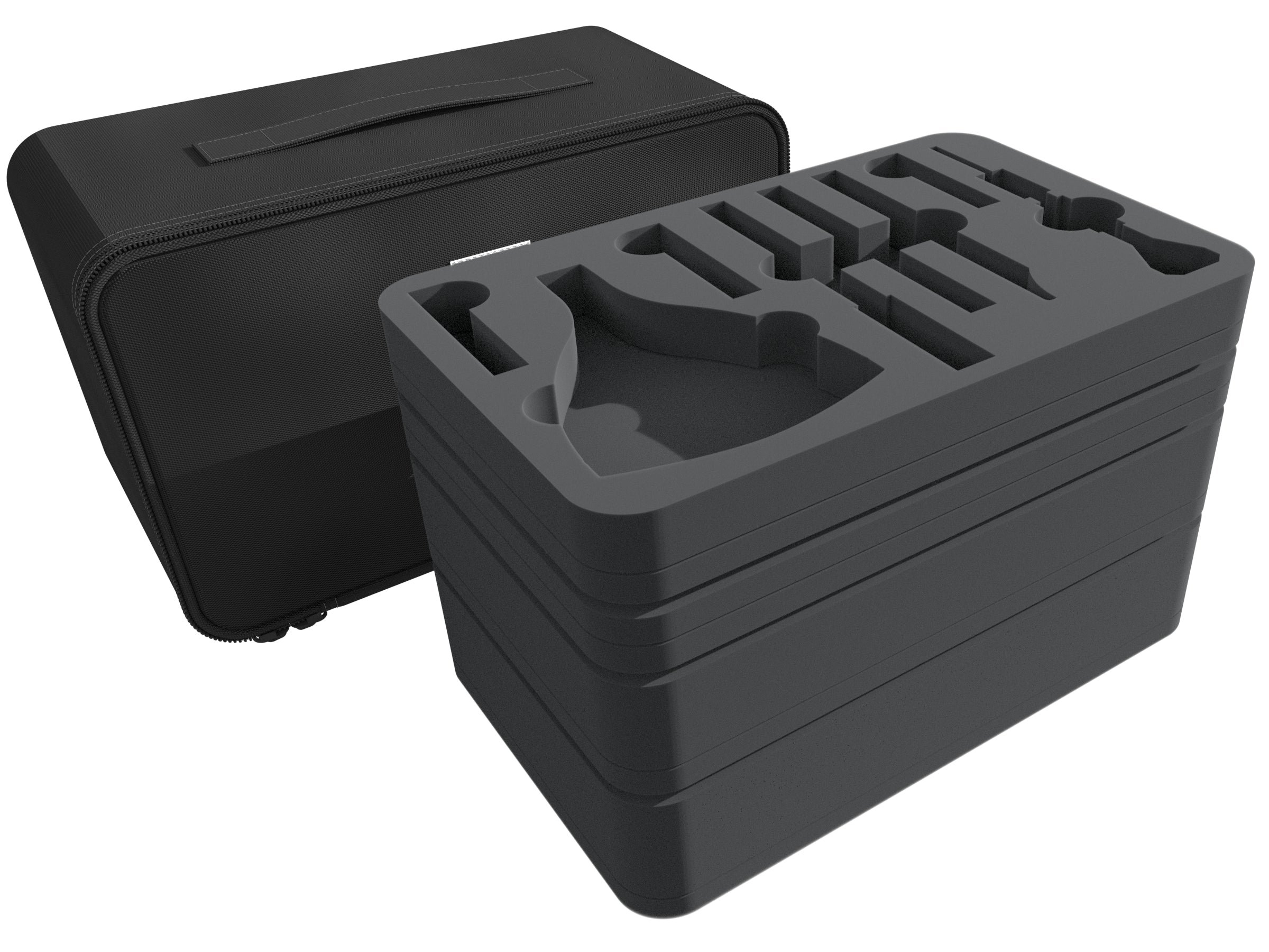 Have you planned a painting and modelling session with your friends but don't know how to transport your utensils to their place? No worries: In our MINI PLUS bag with matching foam trays, your tools, paint pots and small miniatures are splendidly stored and easily transported.