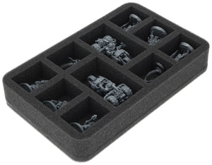 Le nostre soluzioni di stoccaggio e trasporto per Necromunda aiutano a conservare in modo sicuro bande, miniature, segnalini, mappe e terreni e a portarli al tavolo da gioco in modo organizzato.