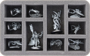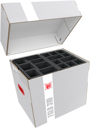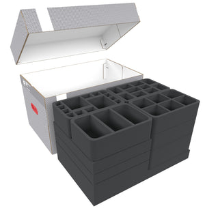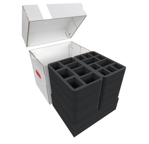 Con scatole, inserti in schiuma e vassoi organizzatori coordinati, le miniature di Necrons, le schede tecniche e gli accessori rimangono ben protetti, riposti in modo salvaspazio e sempre a portata di mano.
