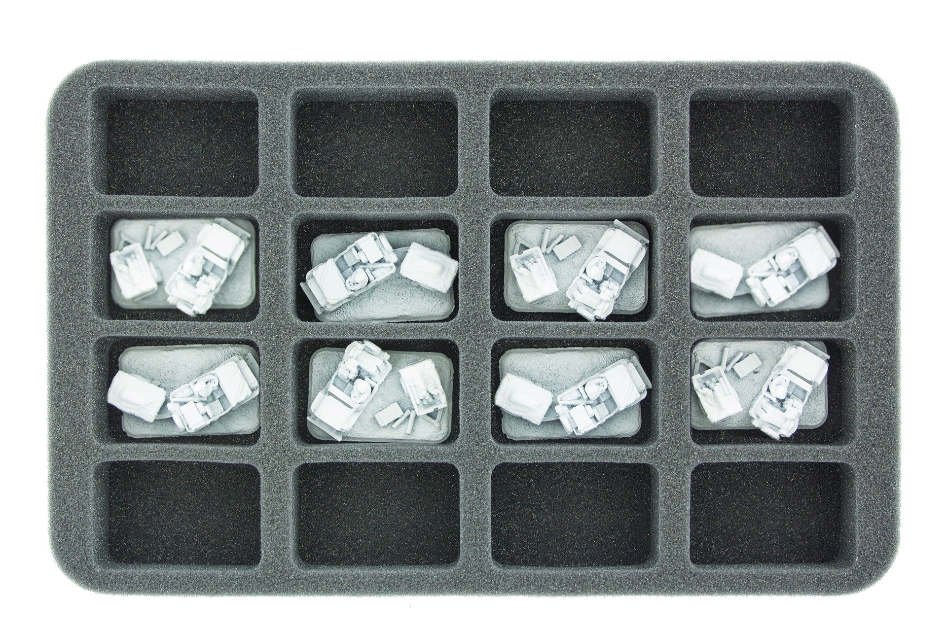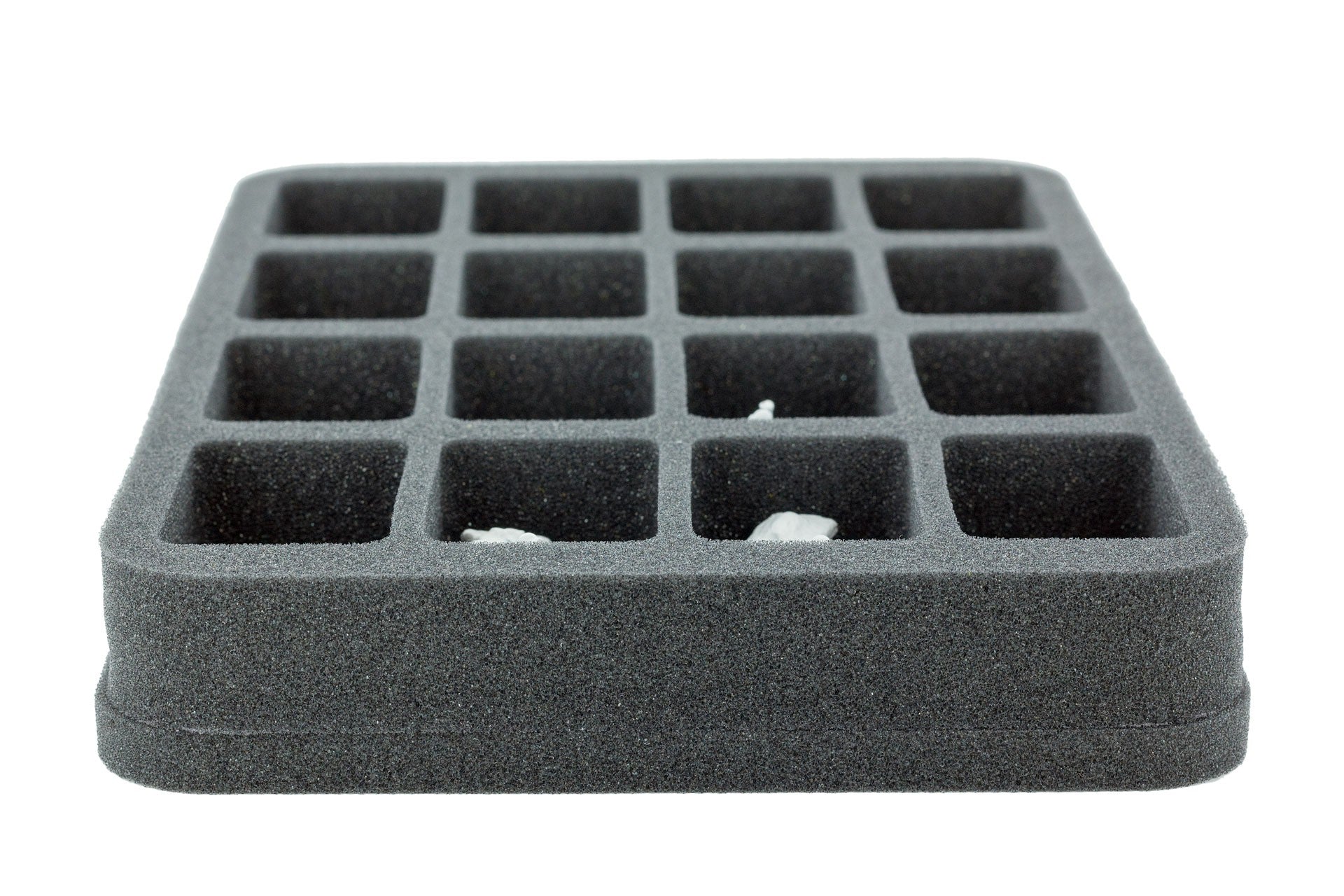 FoW Miniatures a base media contiene 16 FoW Miniatures. La profondità di 35 mm della schiuma è il risultato di 10 mm di schiuma di base e slot tray schiuma con 25 mm profondità effettiva.