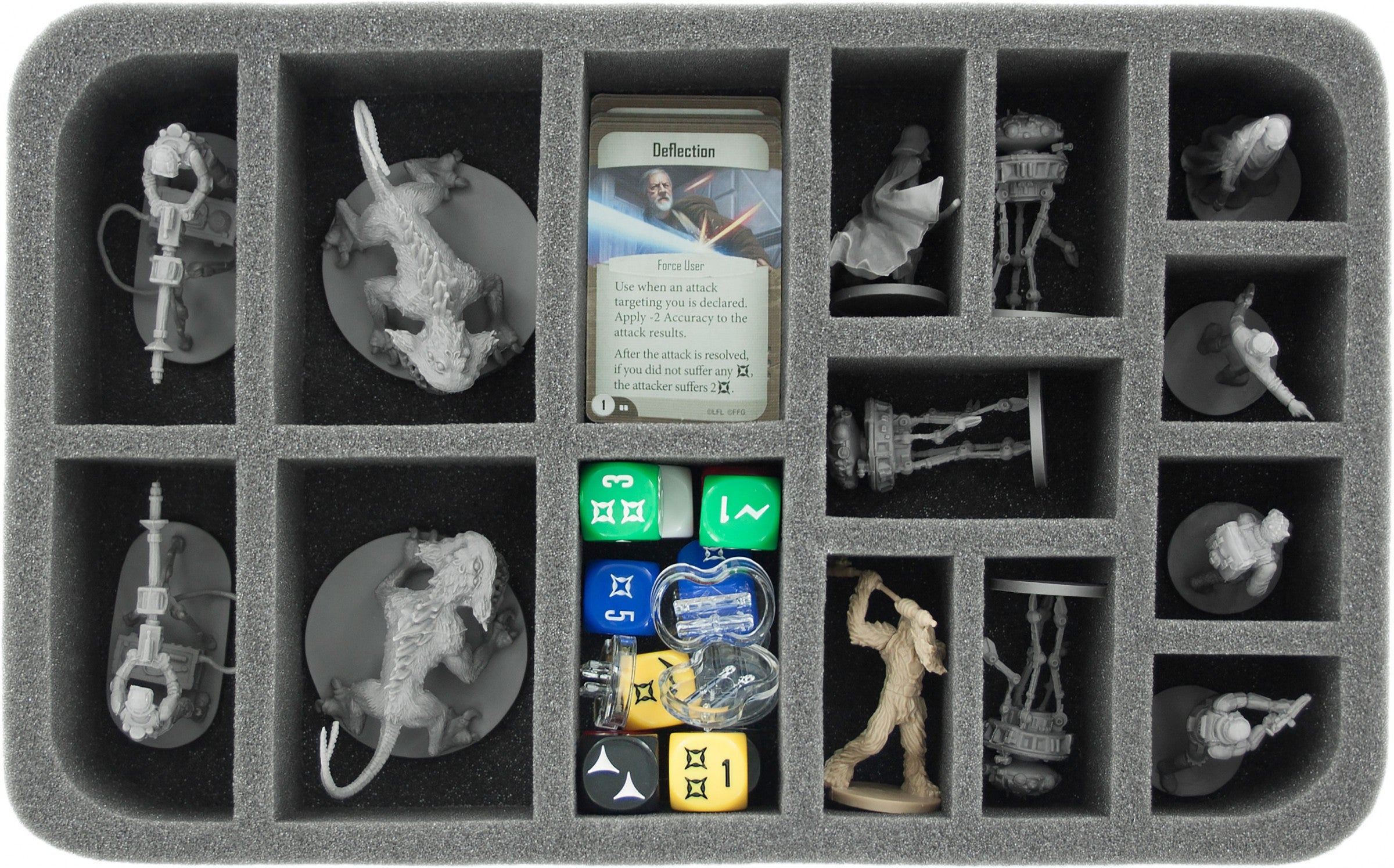 Ideale per Star Wars Imperial Assault Miniatures come Storm Trooper, Heros, E-Web Engineers, Jedi o Nexu. Ogni fessura ha una profondità di 40 mm. Pronto all'uso - base in schiuma 10 mm incollata.