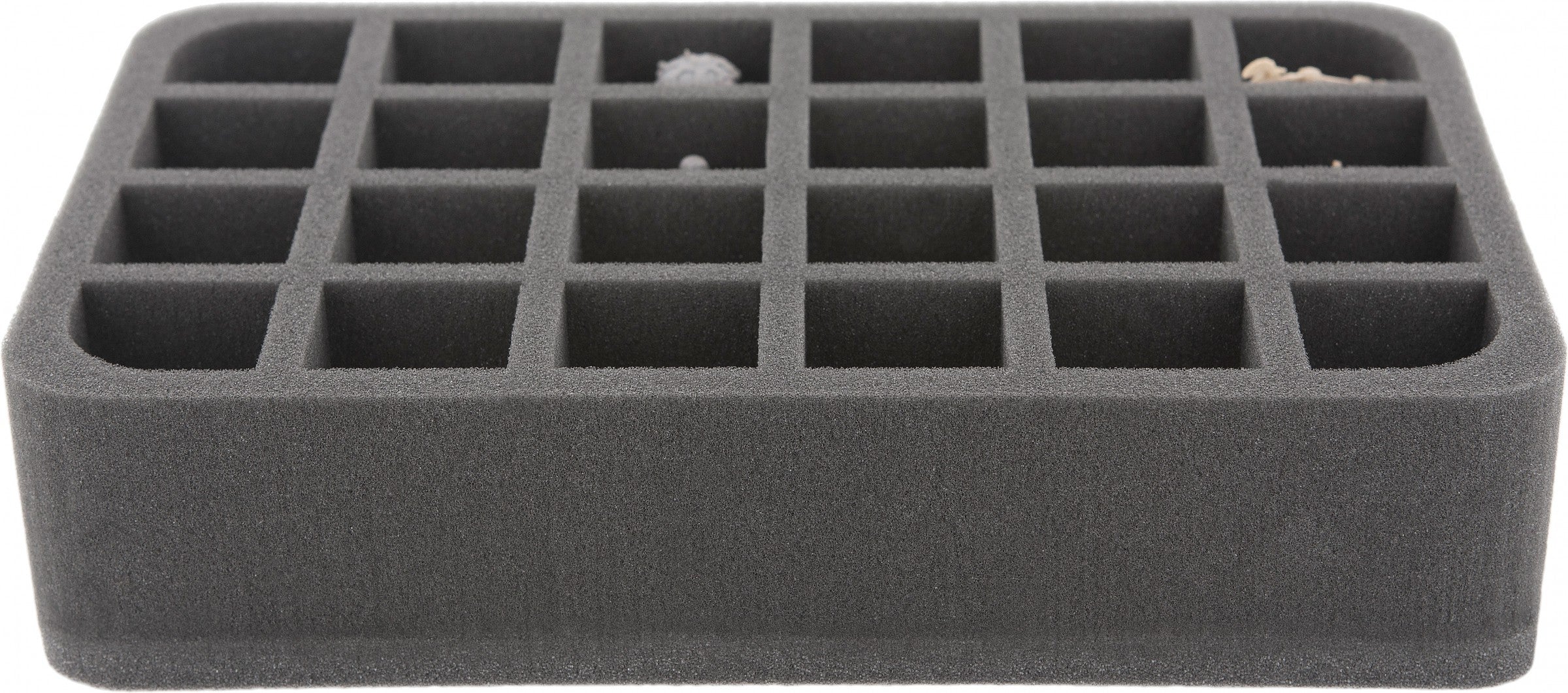 Perfetto per 24 Star Wars Imperial Assault Miniatures. Questo vassoio di schiuma ha 24 fessure, ciascuna profonda 50 mm. Pronto all'uso - base in schiuma 10 mm incollata.