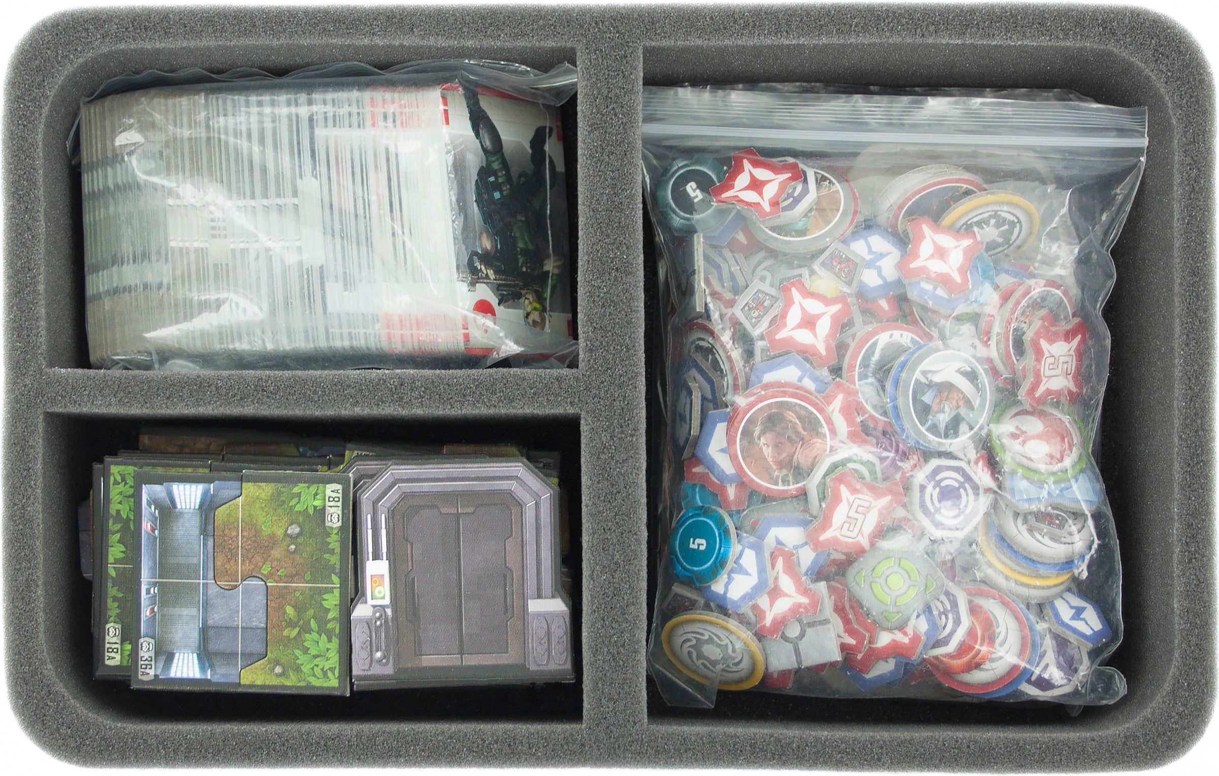 Vassoio in schiuma per grandi miniature, tessere di gioco e carte da gioco Star Wars Imperial Assault - ogni slot 50 mm di profondità. Pronto all'uso - base in schiuma 10 mm incollata.