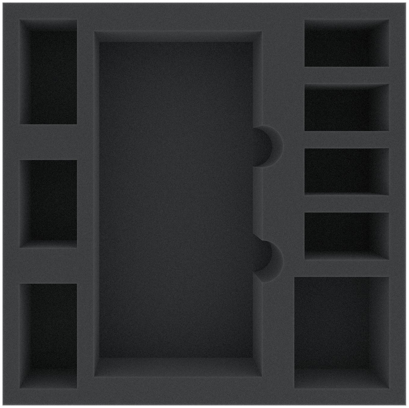 - Dimension foam tray: 238 mm x 238 mm x 55 mm height