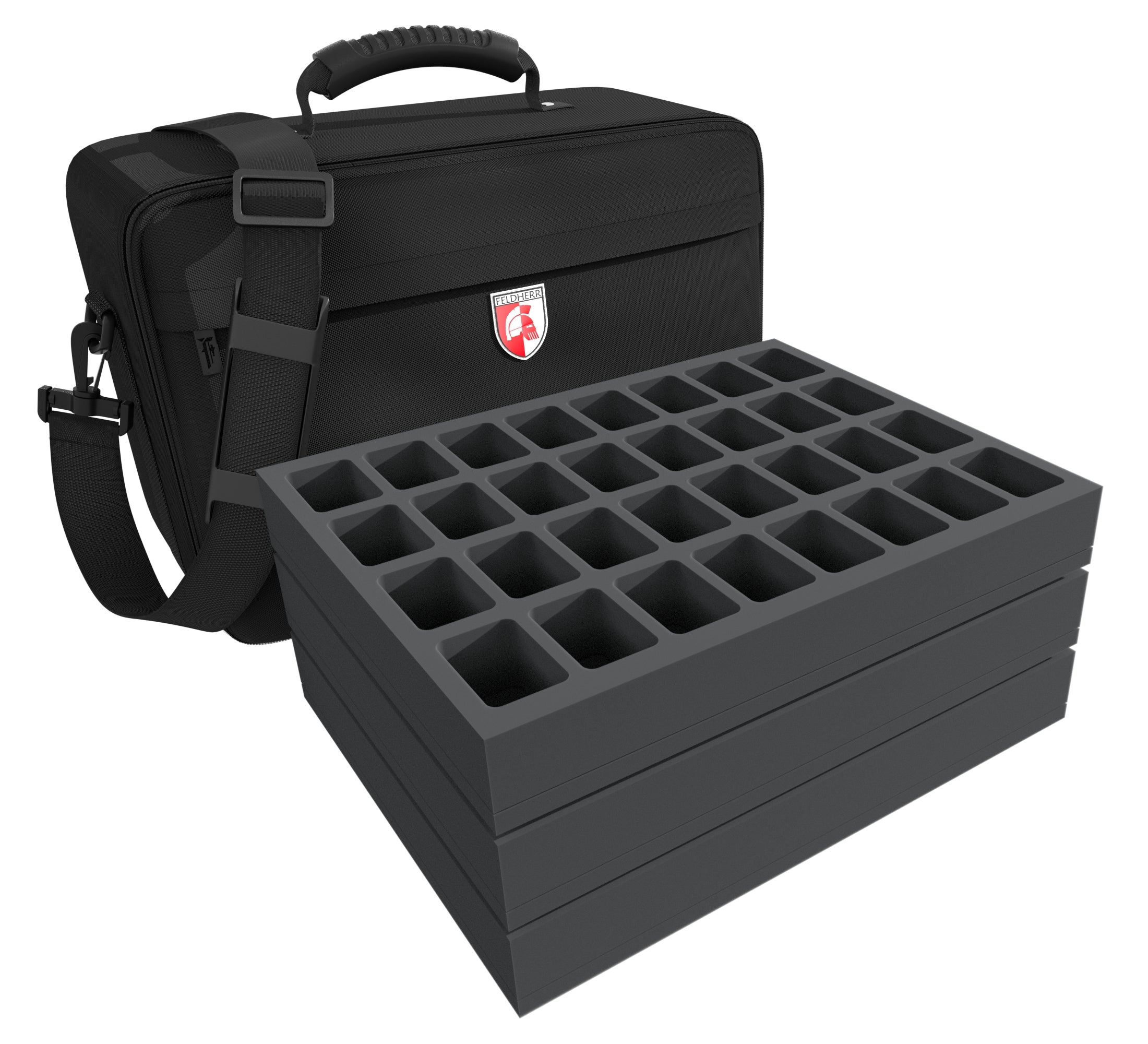 - 4 foam trays each for 32 miniatures or 12 ml, 18 ml, and 24 ml Citadel paint pots (FS045A006)