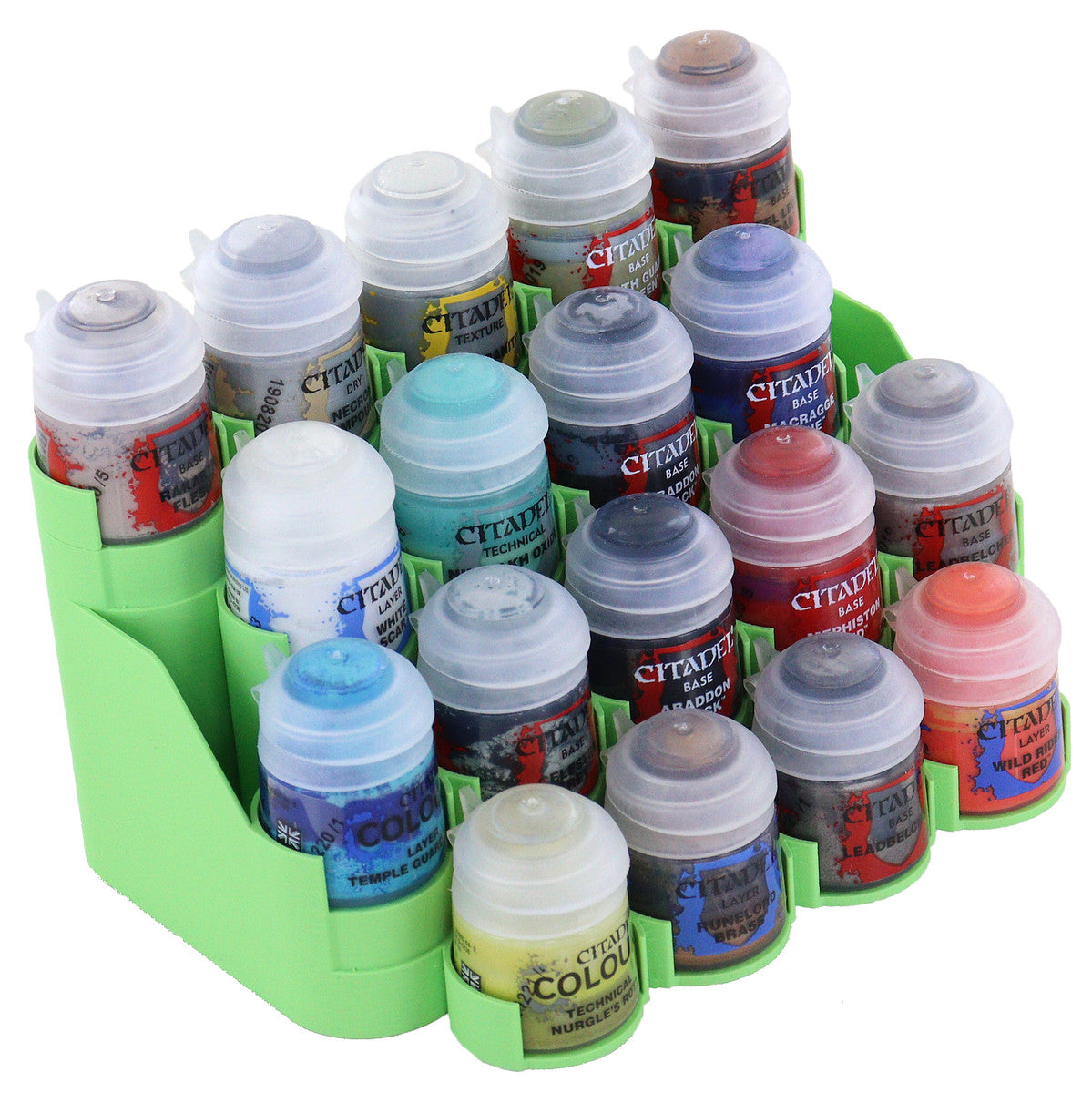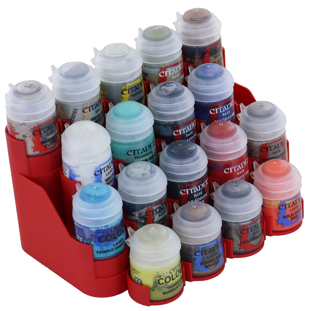 - This color display offers space for up to 18 small, medium, or large Citadel paint pots (12 / 18 / 24 ml).