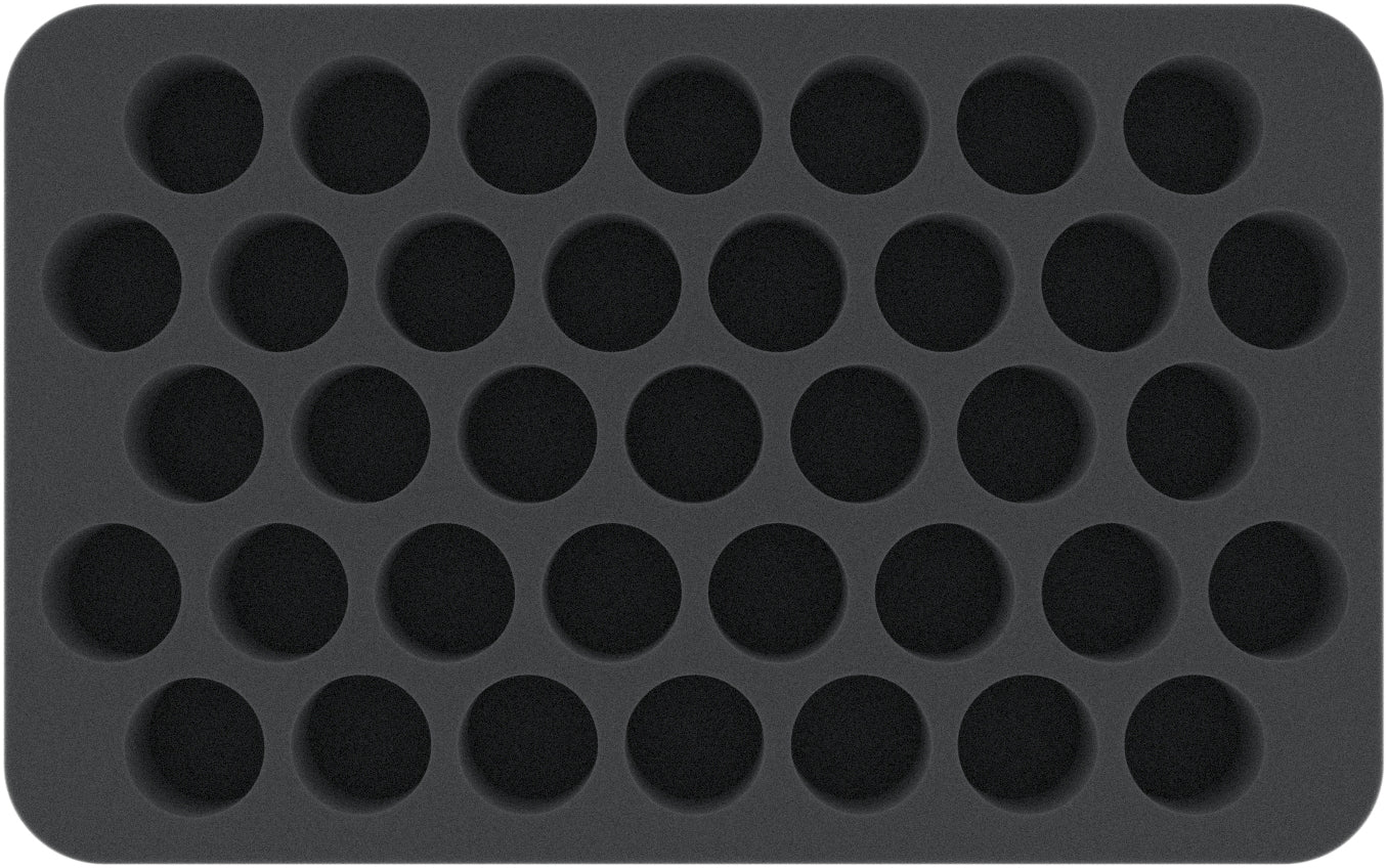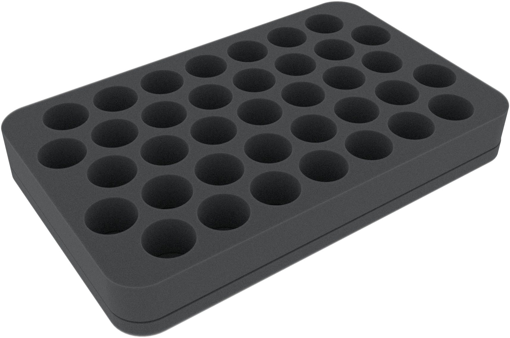 Your color palette has become so big that you slowly lose track of it? You are looking for a solution to store and transport your Vallejo and Army Painter paint bottles in upright position? Then this Feldherr Half-Size foam tray is the perfect solution for you.