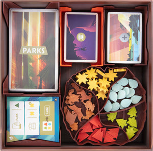 Le soluzioni di stoccaggio di alta qualità per i PARCHI aiutano a mantenere i segnalini di legno, le carte e le plance da gioco al sicuro, ordinati e pronti per il gioco - a casa sullo scaffale così come in viaggio o durante una serata di gioco.