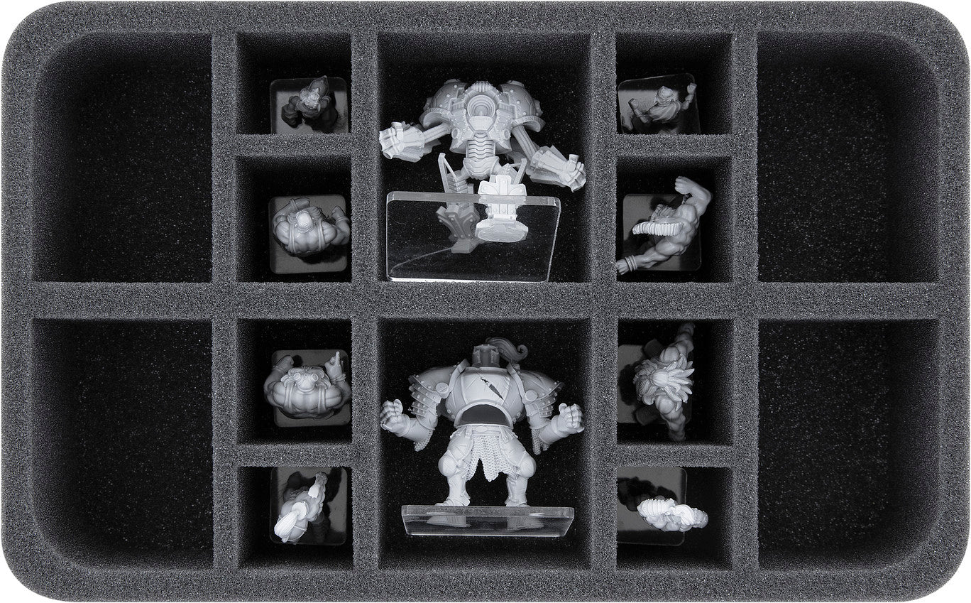 - 2 Half-Size foam trays, each with 14 compartments for miniatures on 25 and 50 mm base (HS065A013)