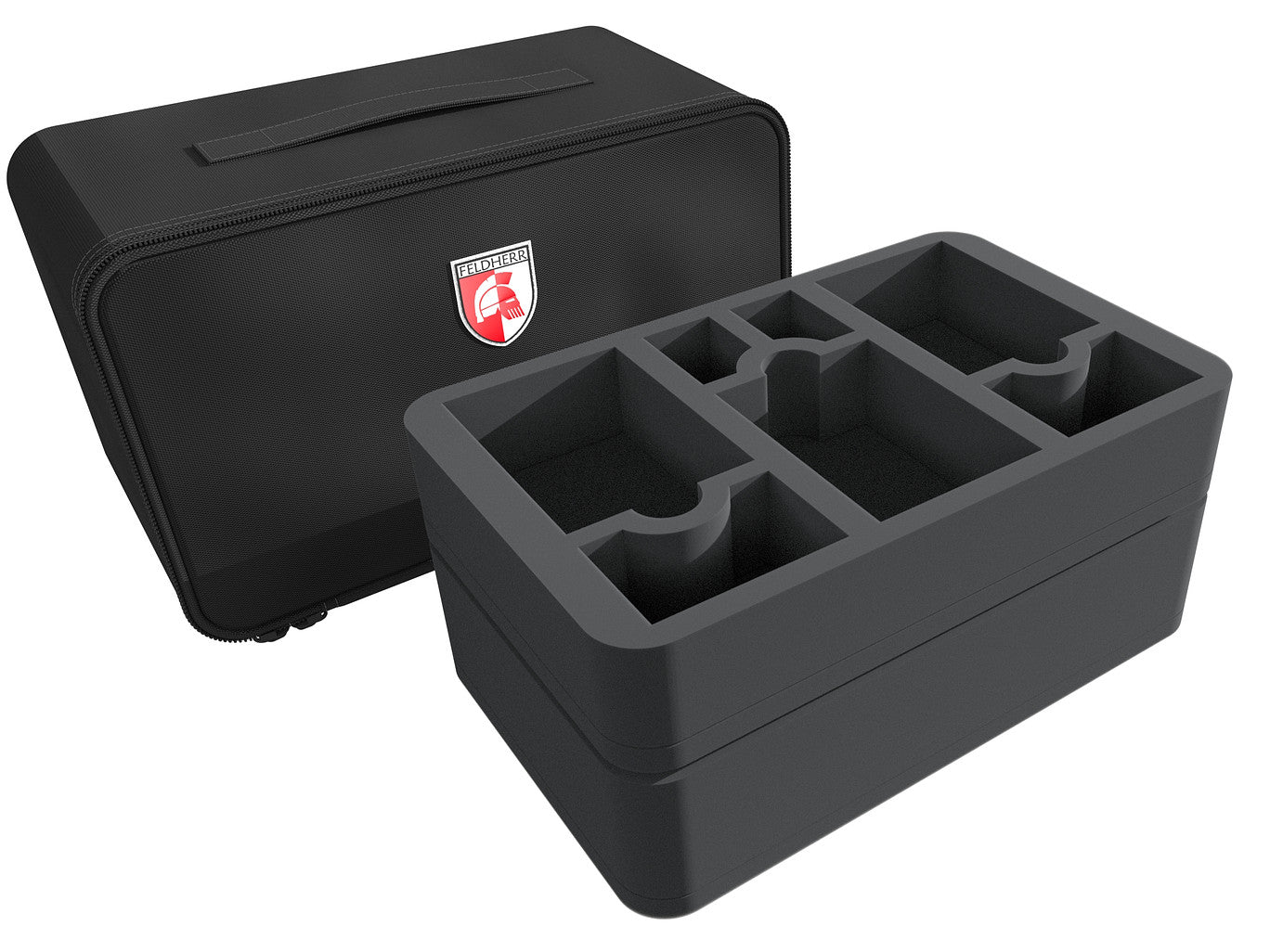 Don't worry; we have the right solution for your model athletes. This convenient Feldherr MINI PLUS bag, including custom foam, offers space for up to 30 miniatures plus game material. Thanks to the high-quality Feldherr foam trays, you can transport your figures and game material carefree and neatly sorted to the next Rumbleslam event!
