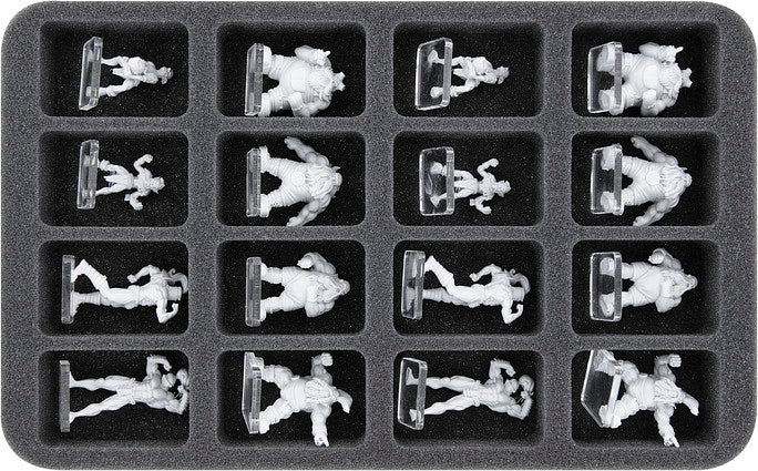 - 1 Half-Size foam tray with 16 compartments for miniatures on a 25 mm base (HS035A064)