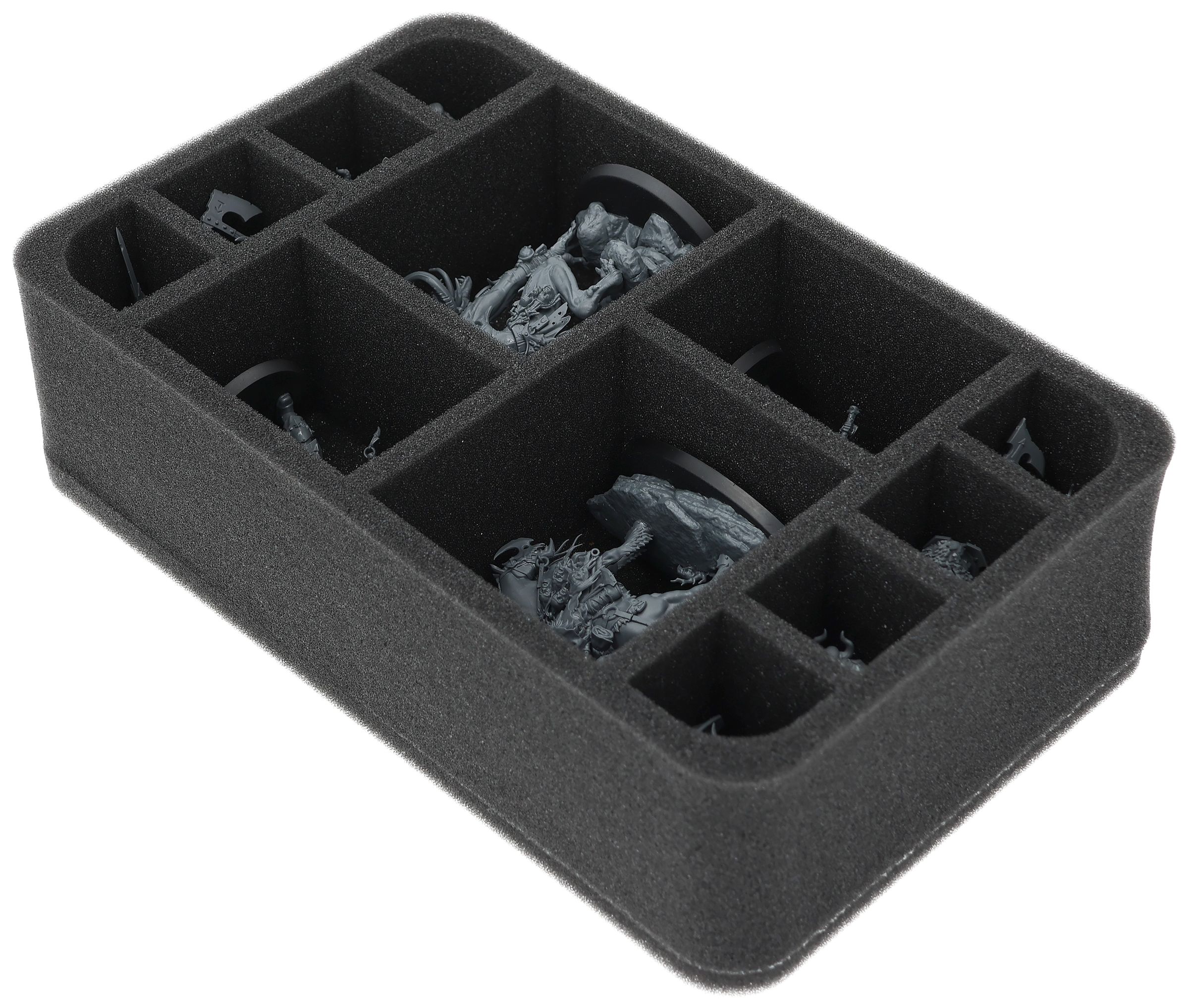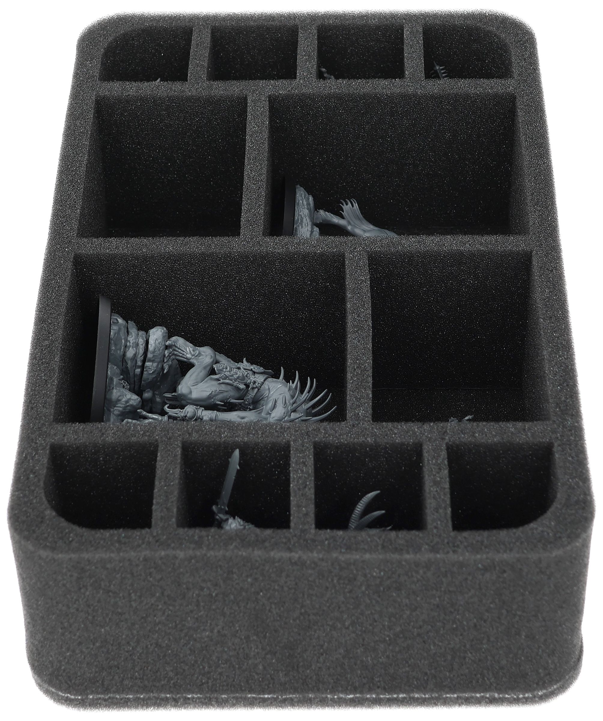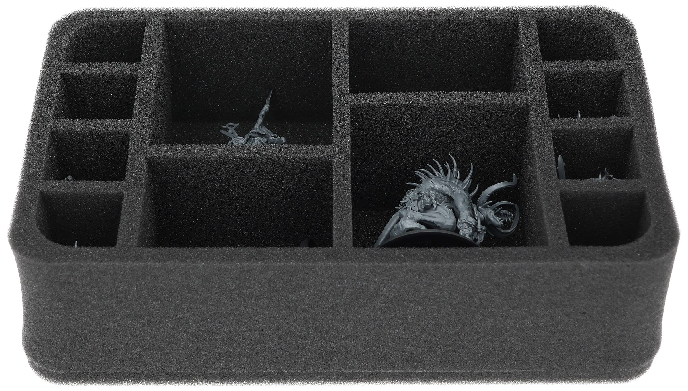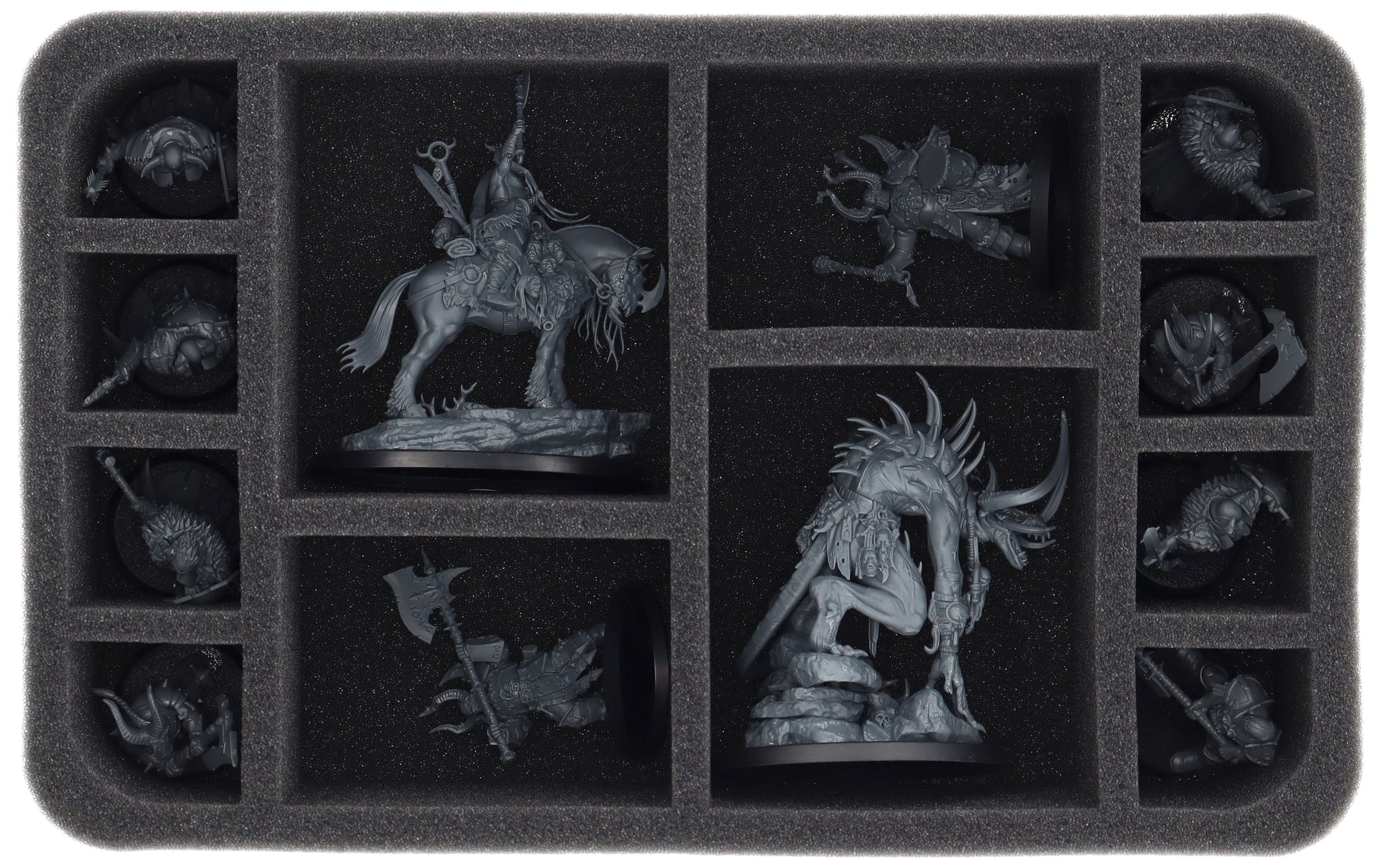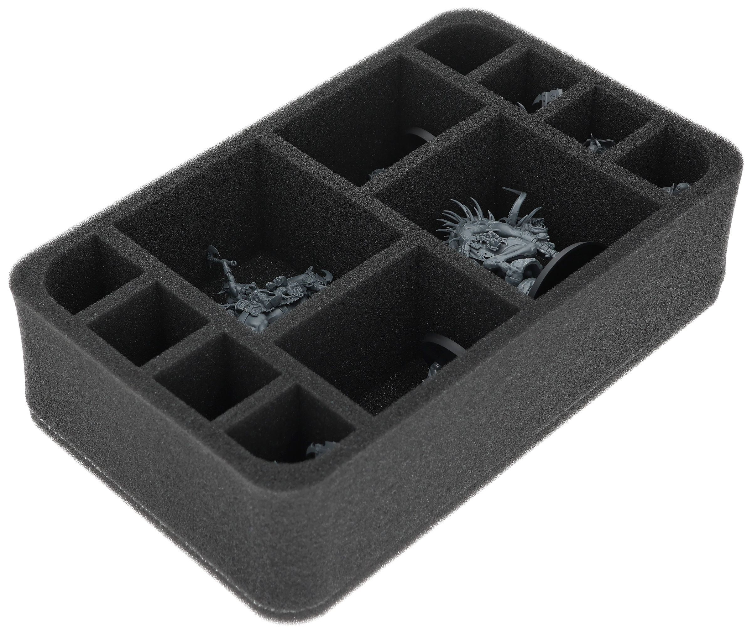 On this Feldherr foam tray you have space for up to 12 miniatures of your army. The insert is especially suitable for storing the Archaon Everchosen, Darkoath Wilderfiend and similar sized models.