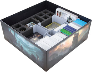 Tenete il vostro gioco base Tainted Grail e le sue espansioni organizzati, protetti e pronti a giocare in ogni momento con sistemi di stoccaggio e trasporto ben studiati. Inserti, vassoi e scatole ben strutturati aiutano a organizzare ordinatamente carte, segnalini, figure e materiale narrativo, riducendo notevolmente i tempi di allestimento.