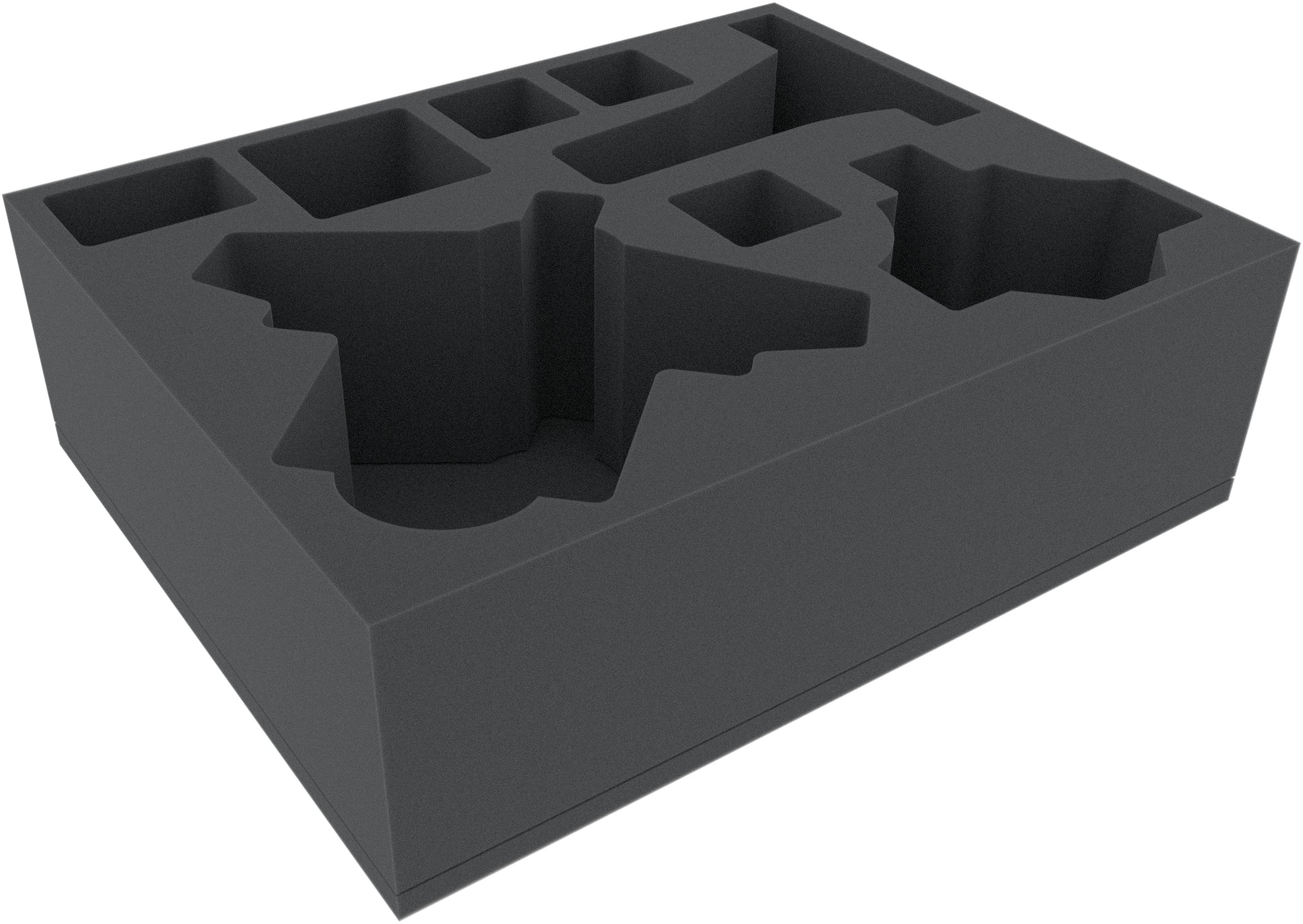 Thanks to the accurate cut compartments, the miniatures have a tight fit and can not slip. The soft, fine-pored foam protects fine details, such as rocket launchers or cannons from damage.