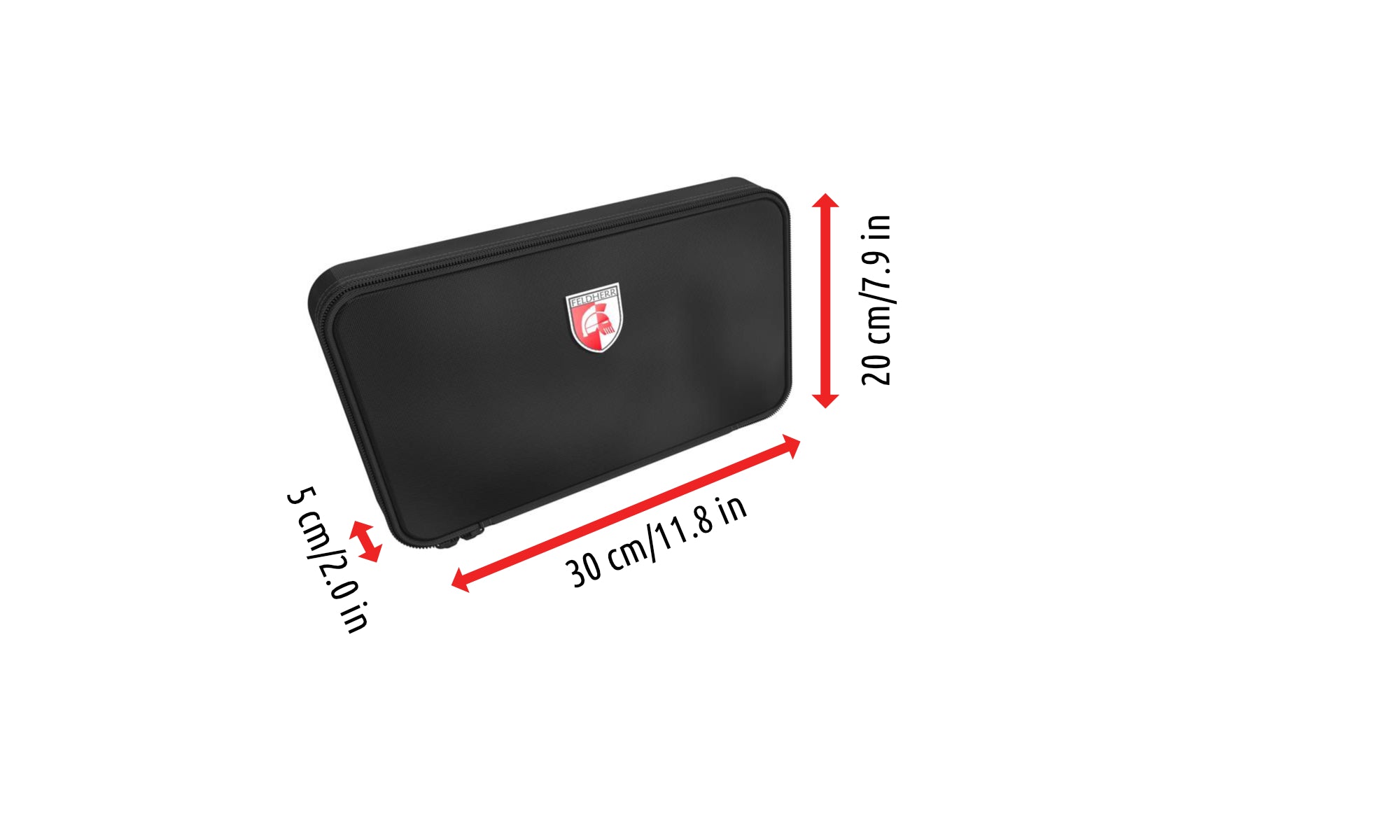 The MINI MINUS bag is made of particularly hard-wearing material and ensures that the contents are optimally protected from external influences. A meshed pocket with a zipper on the inside offers additional space, e. g. for the rule book.