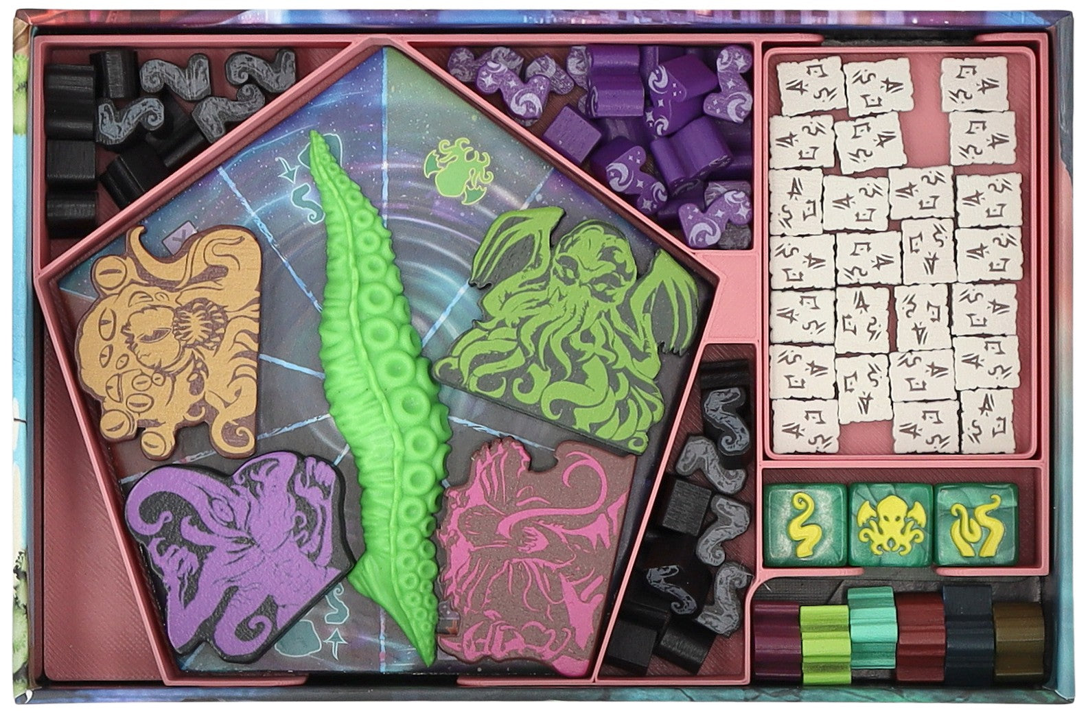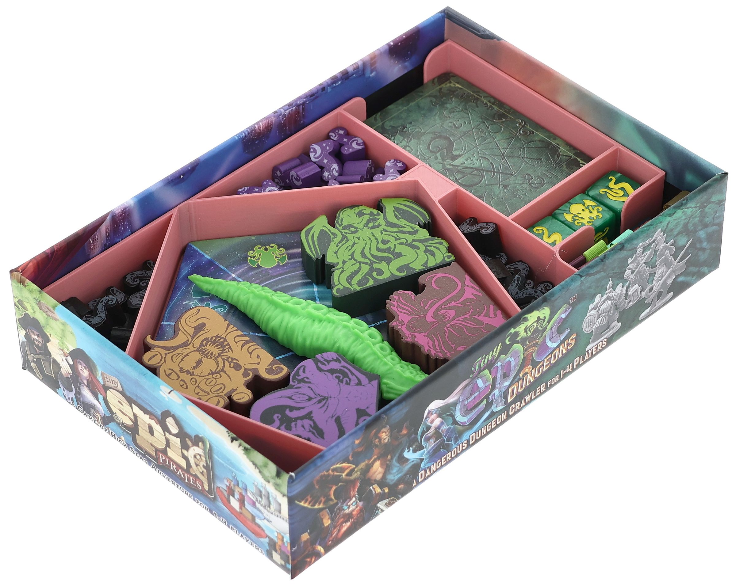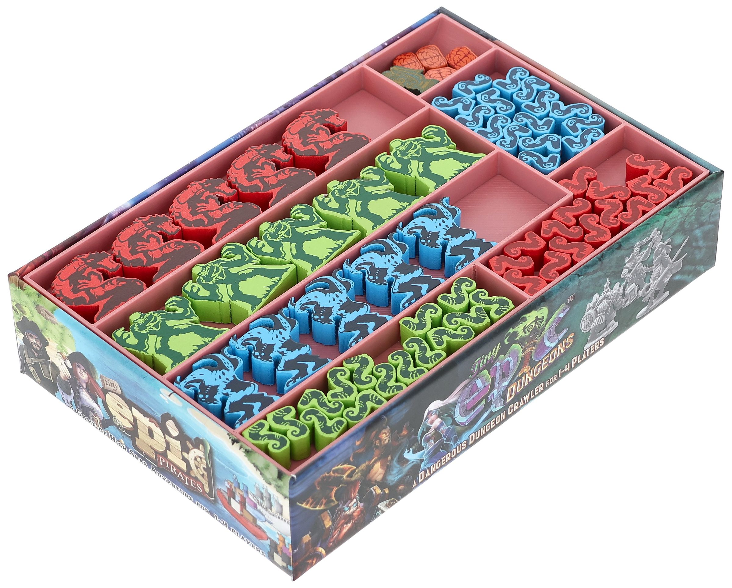 - The Organizer made of sturdy plastic fits exactly into the board game box of the “Tiny Epic Cthulhu” core game (Org. dimensions: 167 x 107 x 31 mm).