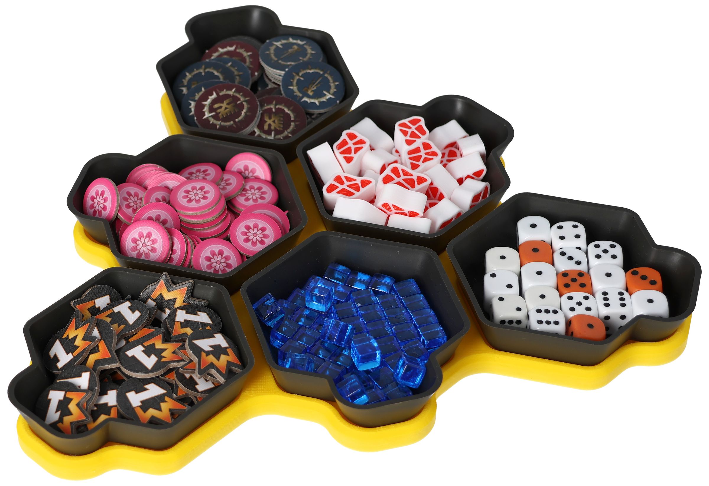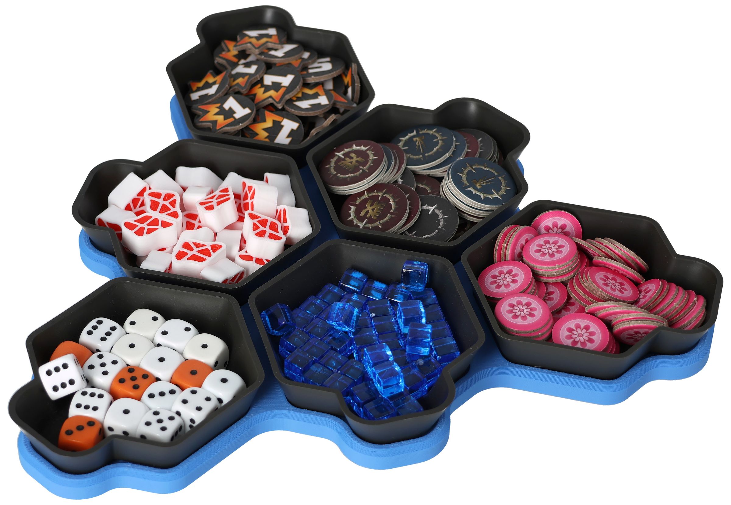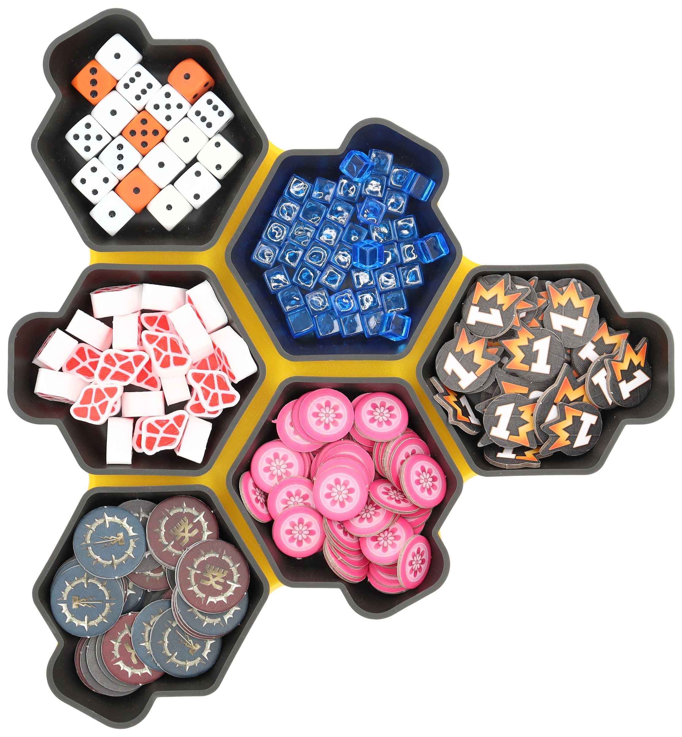 You need more space for your tokens, dice and tiles? Other colors would be nice too? No problem, the SHELL is also available as a 6-pack in six different colors and in the order-loving SHELL Core Box.