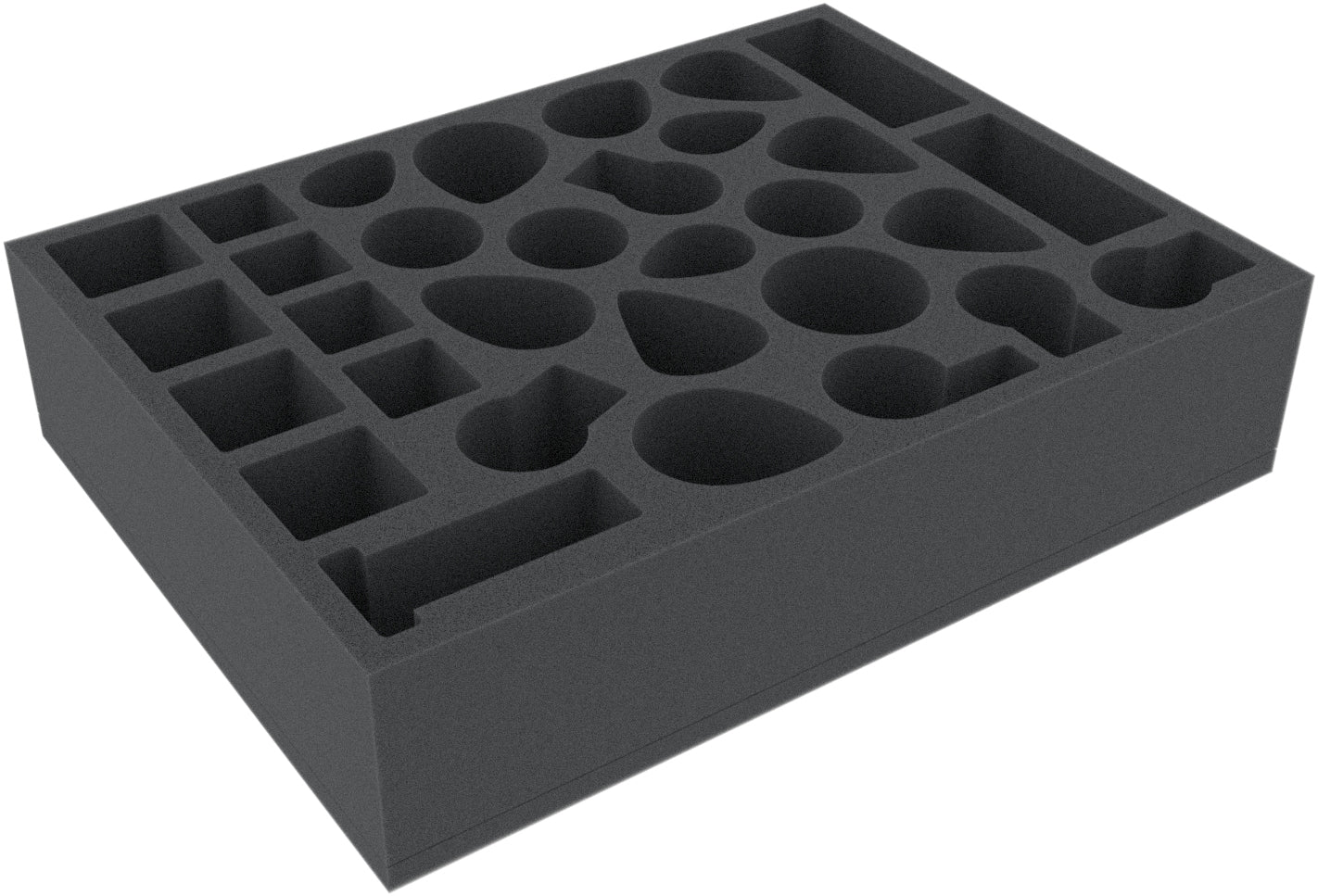 • The foam tray has the dimensions: 285 mm x 212,5 mm x 65 mm total height (57 mm usable height + 8 mm foam base).