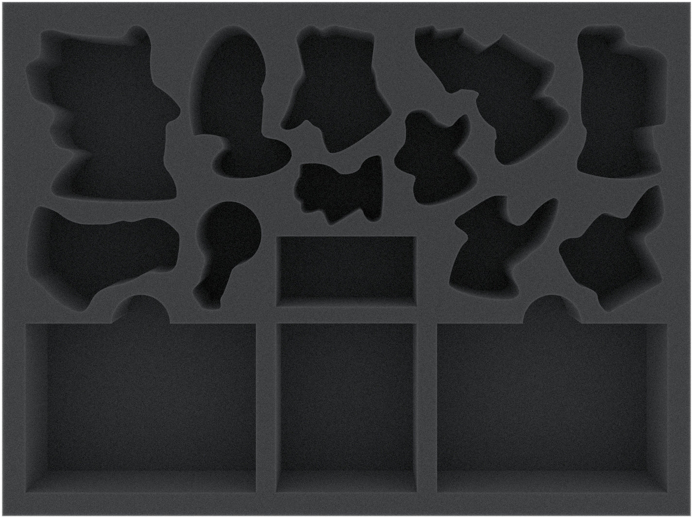 The separate storage of the figures has not only tactical reasons. Now you can safely carry the box to the next game. The miniatures won't slip around in the box, collide with each other and sensitive parts will stay unharmed. Flaked or scratched acrylic paints are also a thing of the past.