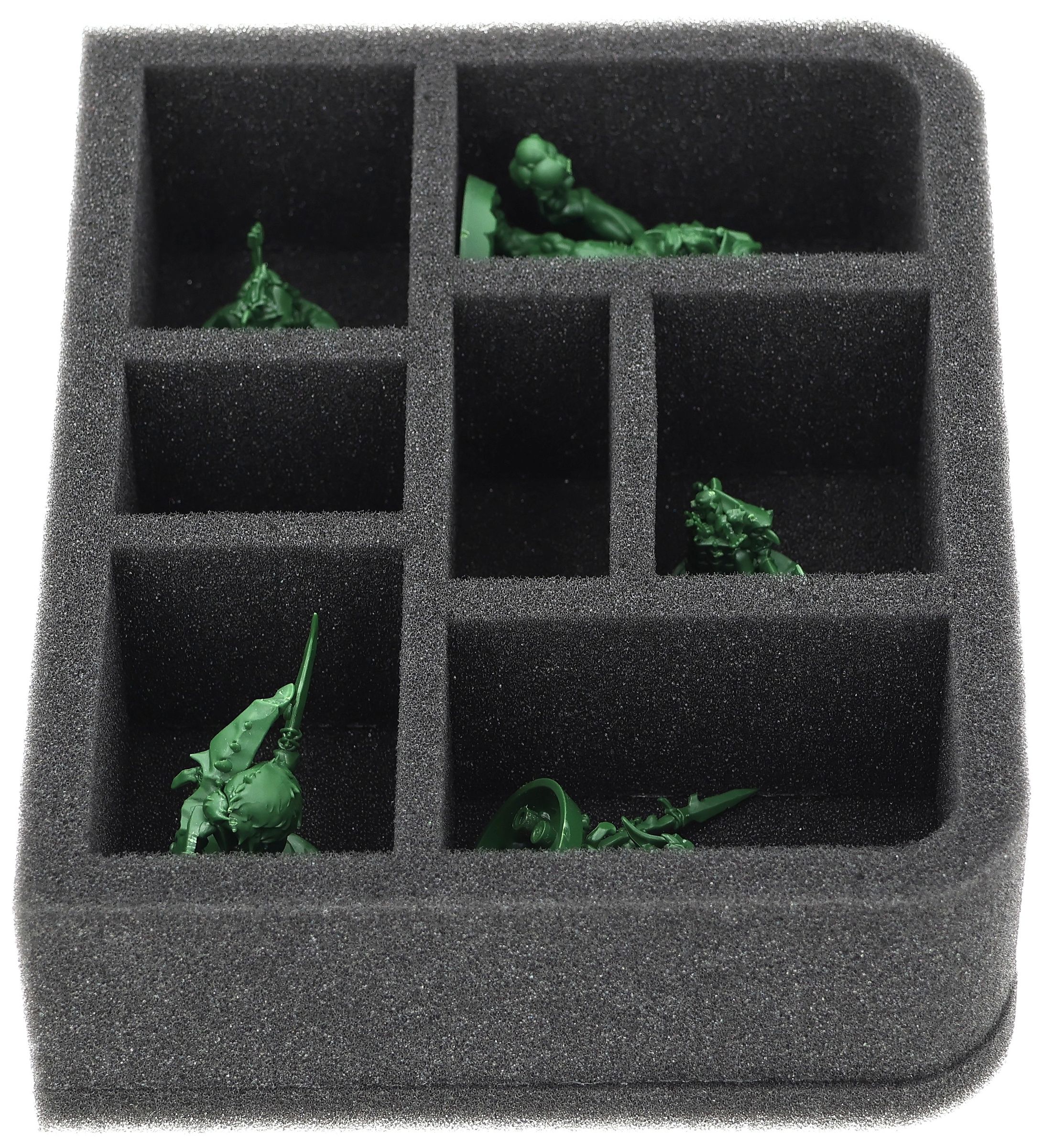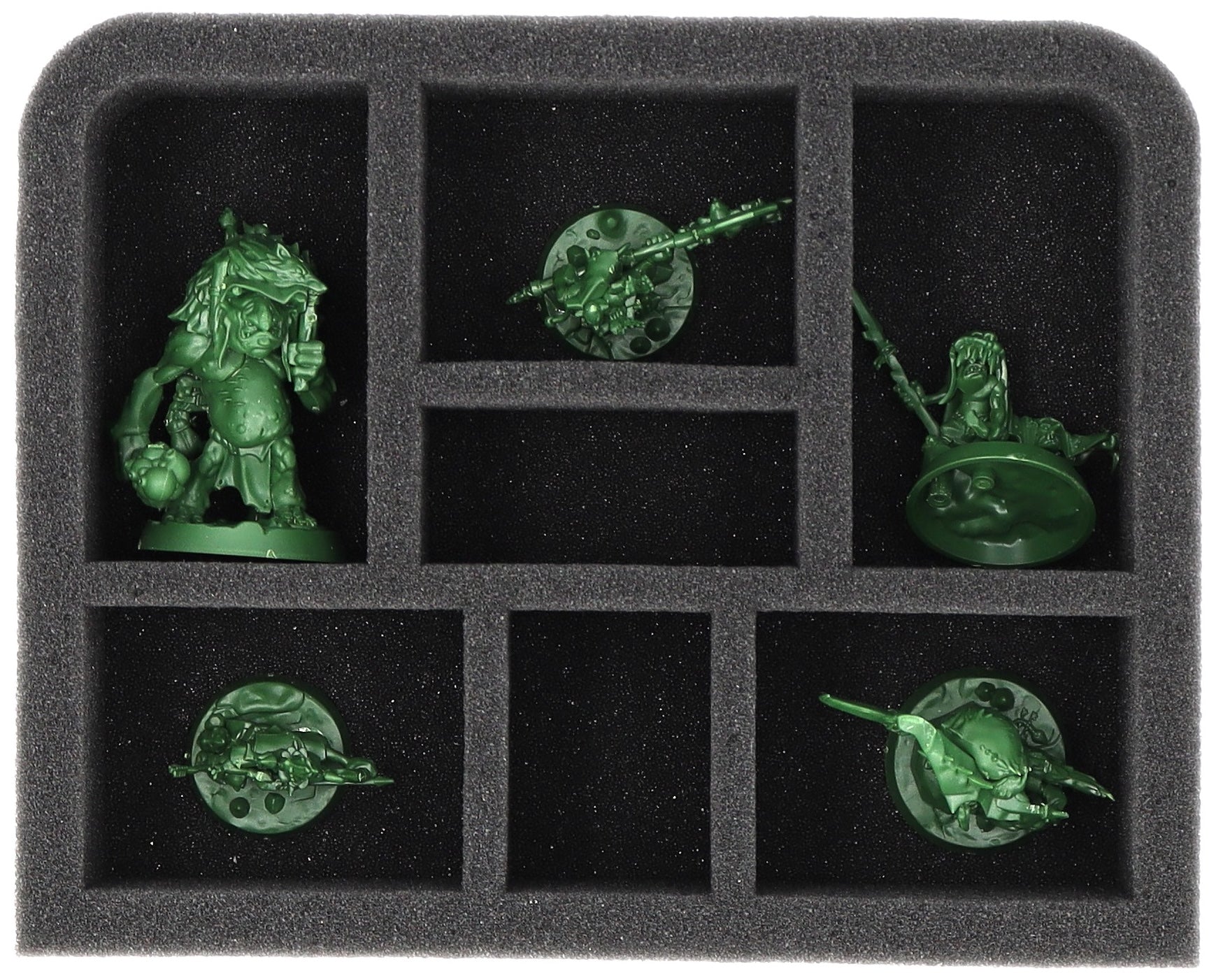 On this Feldherr foam tray you have space for up to 7 miniatures of your Warhammer Underworlds Army. The insert is especially suitable for storing the Grandfathers Gardeners and similar sized models.