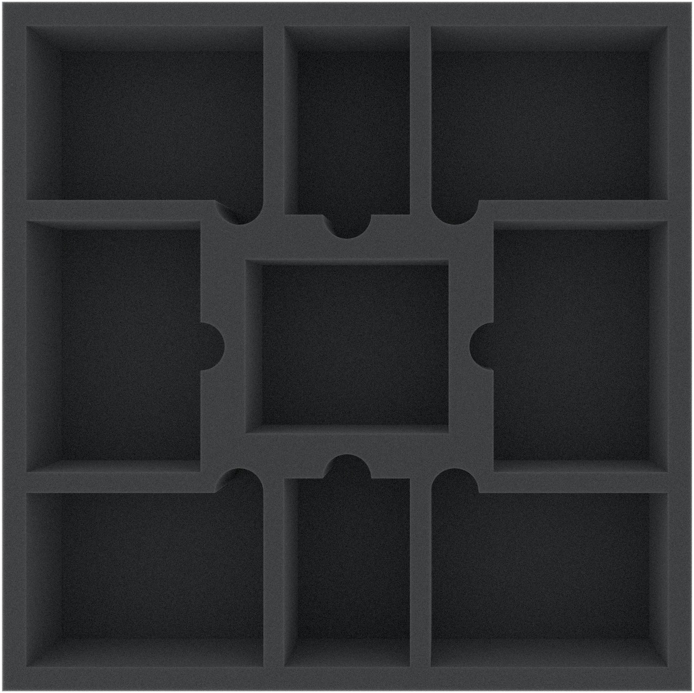 Vassoio in schiuma con 9 fessure per molte scatole da gioco da tavolo originali. I 9 diversi slot sono perfetti per gettoni e carte nelle maniche.