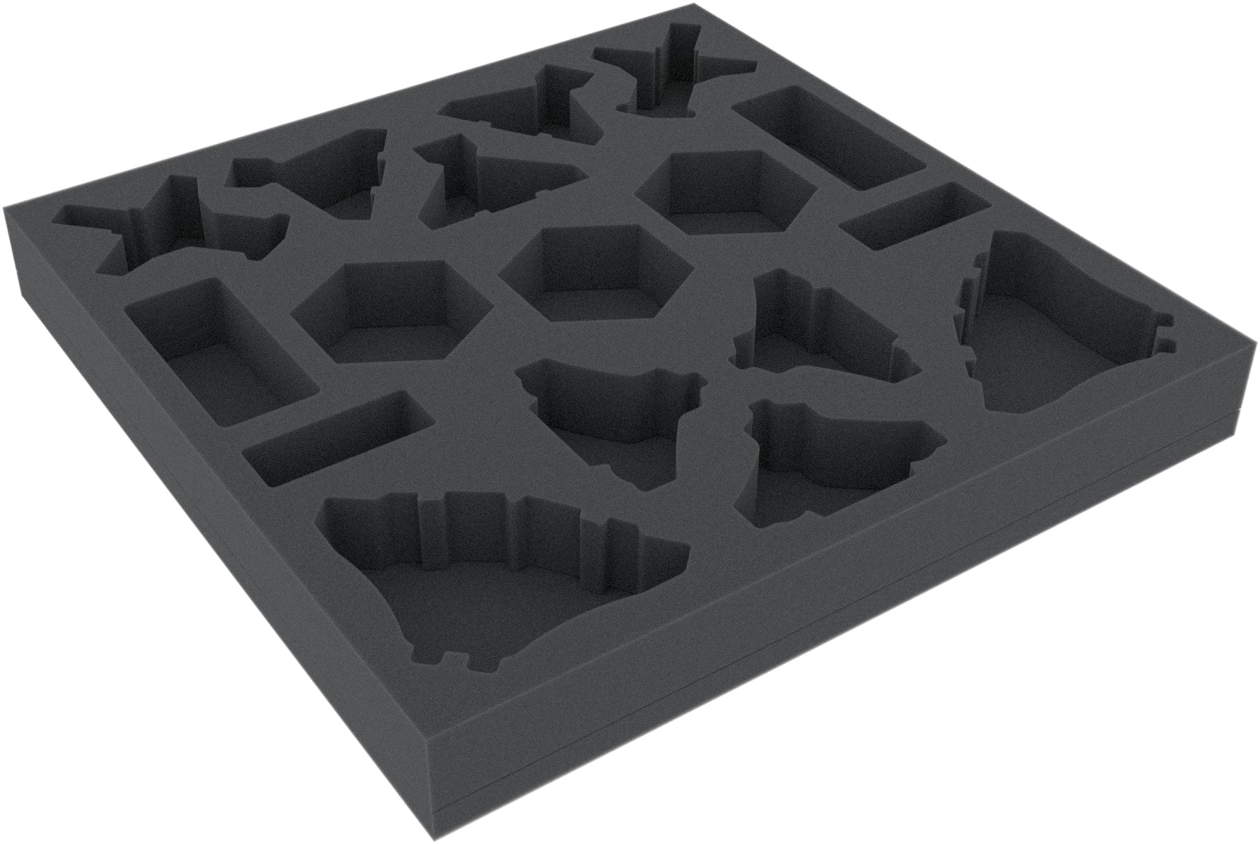 - The foam tray has the dimensions: 290 mm x 290 mm x 35 mm total height (25 mm usable height + 10 mm foam base)