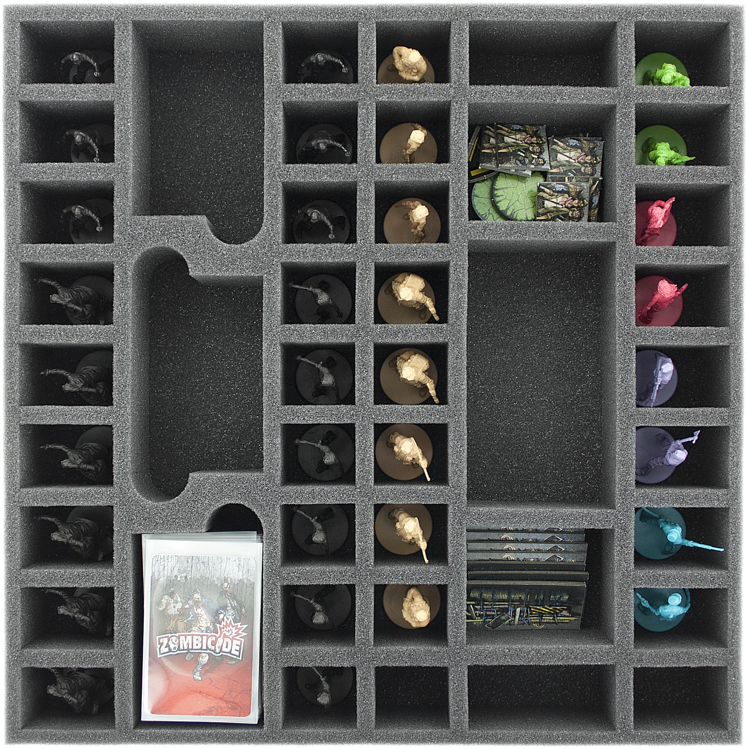Per Zombicide Angry Neighbors ha creato un vassoio di schiuma. Il vassoio è stato progettato per contenere la roba dei vicini arrabbiati. Ci sono 44 scomparti sul vassoio di schiuma.