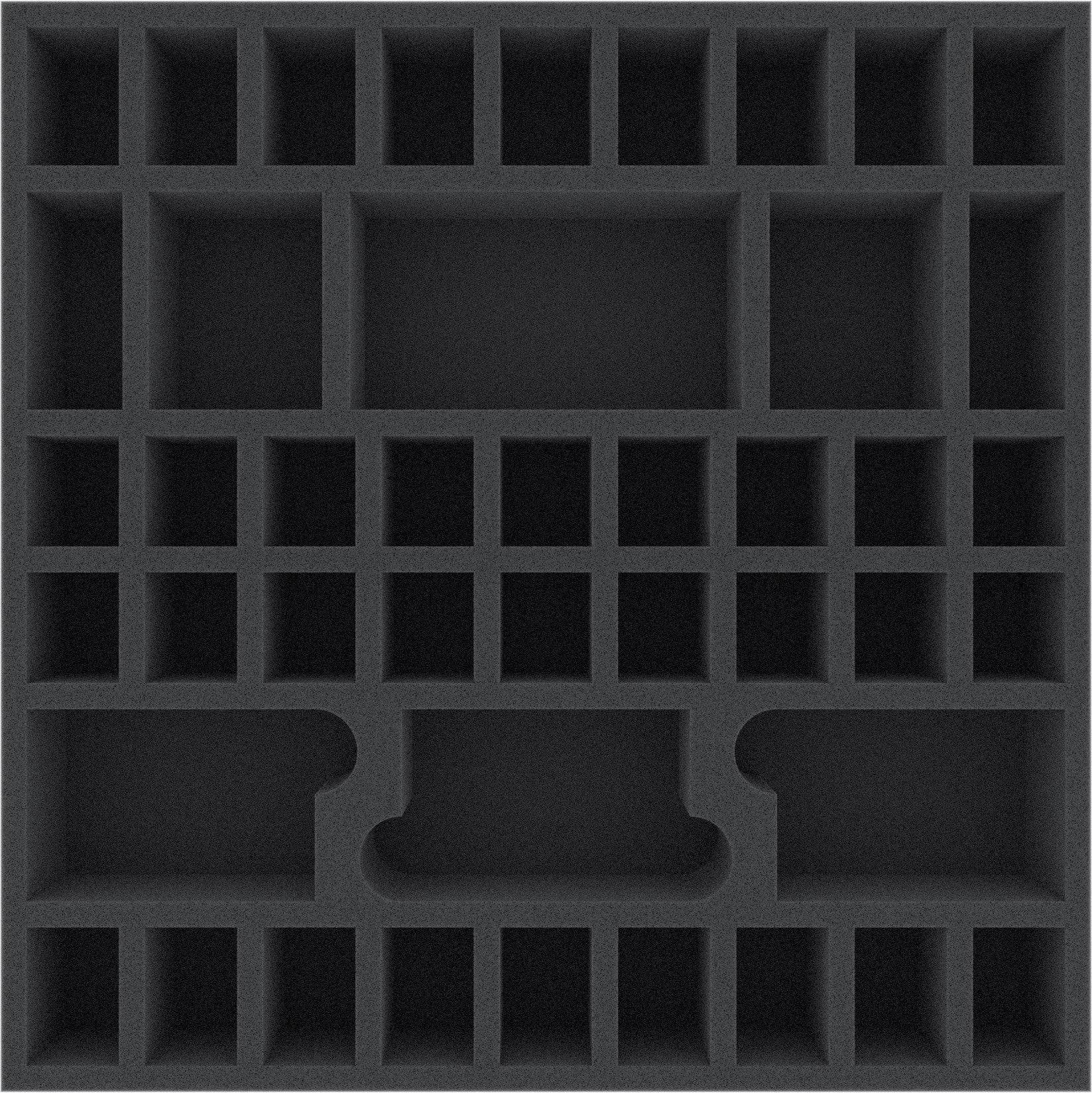 Le dimensioni di questo vassoio di schiuma per giochi da tavolo sono 295 mm x 295 mm x 50 mm. Lo spessore di 50 mm è il risultato di 10 mm di base e vassoio con altezza utile utile utile di 40 mm.