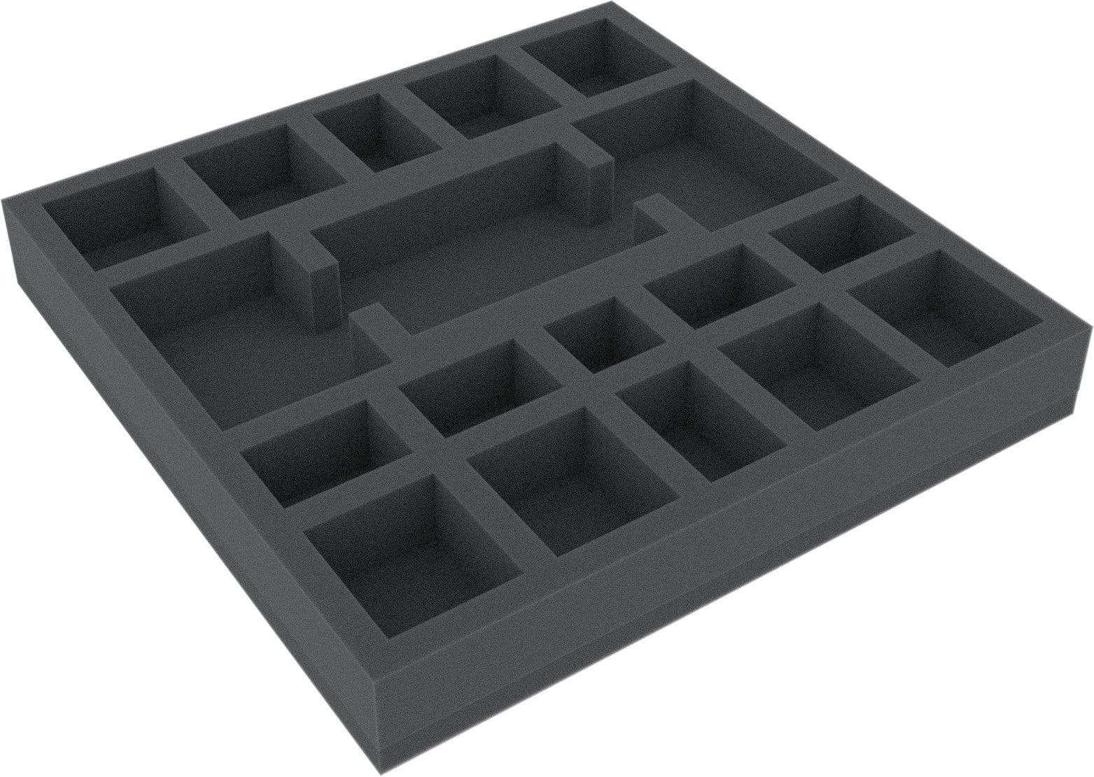 Foam tray for the Star Wars Imperial Assault - Twin Shadows board game box. The tray provides a great solution for protecting all figures, tokens and cards in sleeves from the original board game box. There is an additional 10 mm foam topper to protect the Twin Shadows figures.