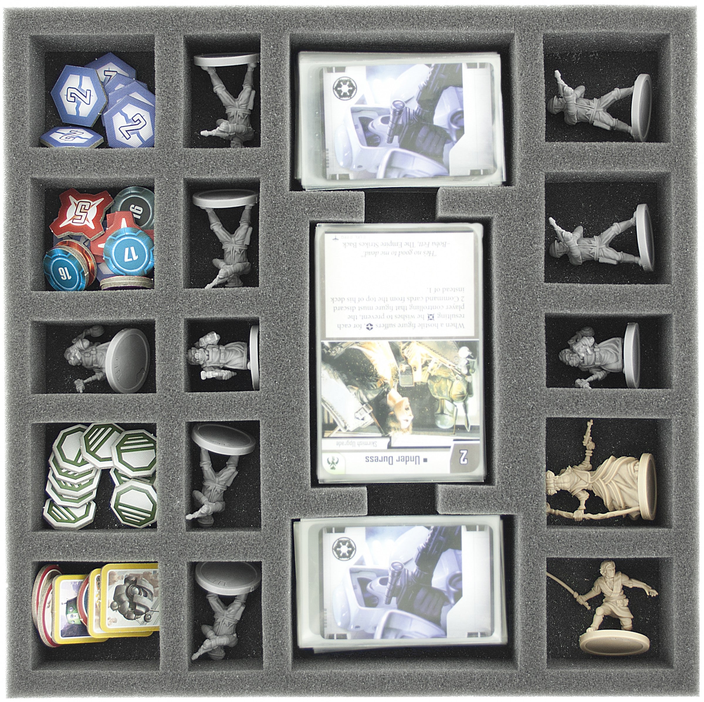 • 1 x 35 mm foam tray for the entire Imperial Assault - The Bespin Gambit miniatures, tokens and cards in sleeves (item no. AS035IA12)
