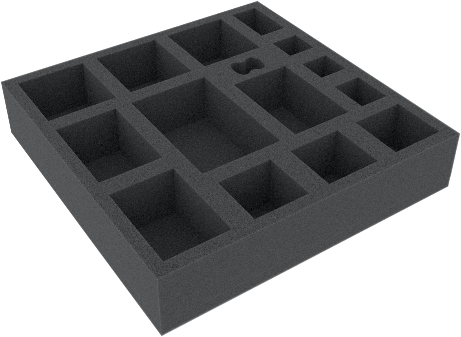 Foam tray with 15 slots for many original board game boxes. The 15 different slot own yourself for everything imaginable game material.