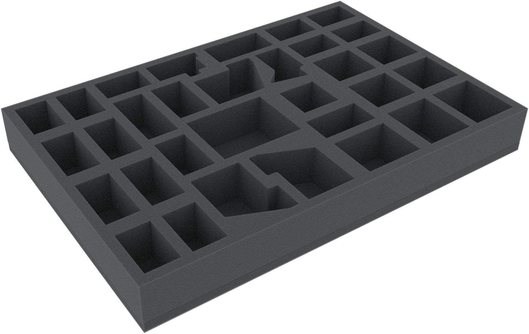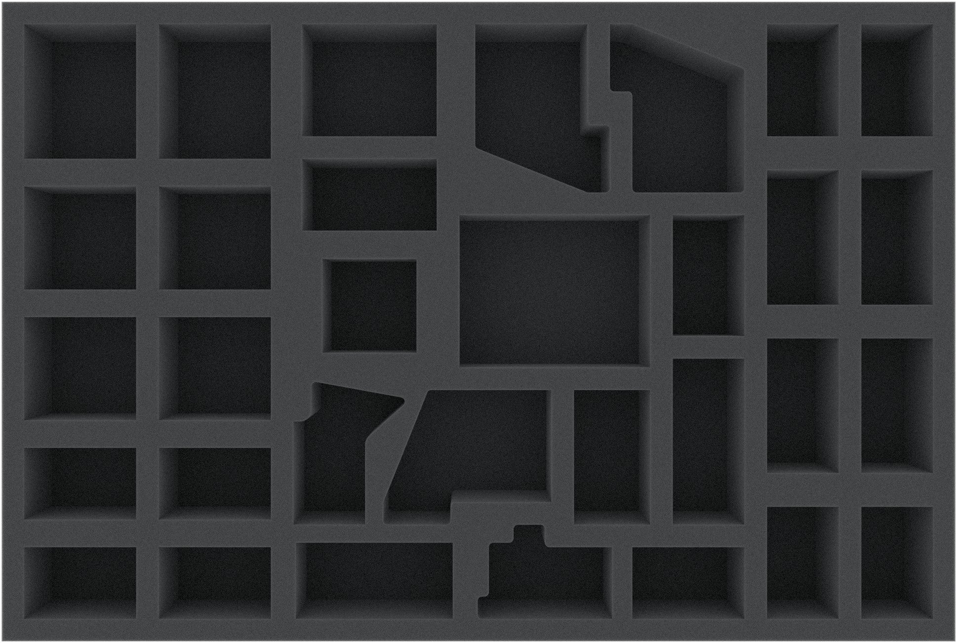 Especially for Warhammer Quest - Shadows Over Hammerhal cut foam tray. The foam tray with 32 slots large enough for the miniatures from the game and fits perfectly into the board game box.