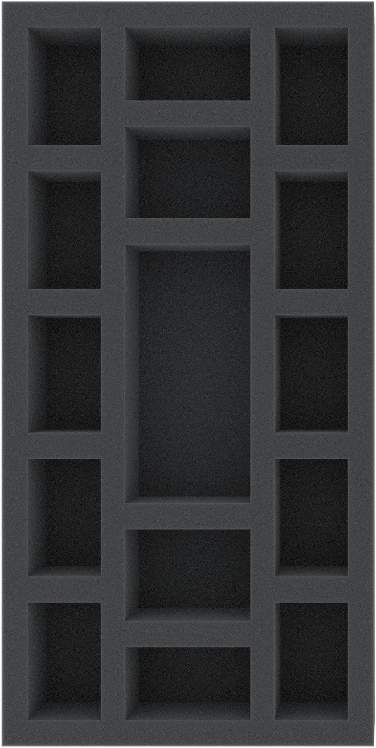 This foam tray is divided into 15 compartments and is ideal for the safe storage of smaller miniatures and for the clear sorting of game material.