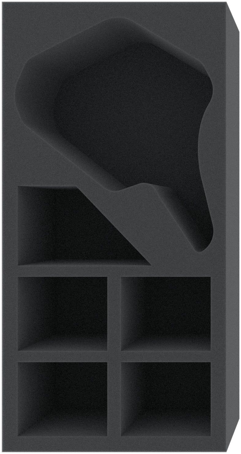 The 85mm high insert provides a total of 6 compartments for your miniatures. The two Giant Skeleton Archer, the two Giant Skeleton Soldier, and the single Black Knight all receive custom-fit compartments. For the unsettling Gravelord Nito, a miniature-precisely cut compartment is available as his resting place. Because of the custom-fit cut, your miniatures have a tight fit and can't slip out of place. The soft, fine-pored foam protects delicate parts from breaking off and the colors of your painted models from scratches and paint abrasion.