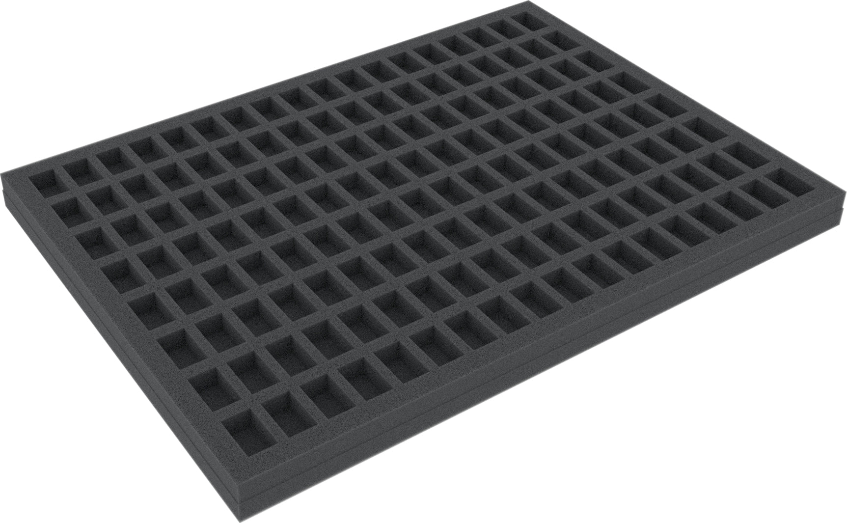 This foam tray has 144 custom-cut compartments which can accommodate all miniatures from the 878 Vikings base game and the Viking age expansion. The tray fits exactly into the board game box of the base game