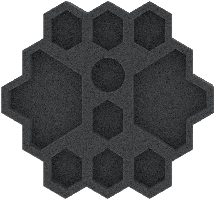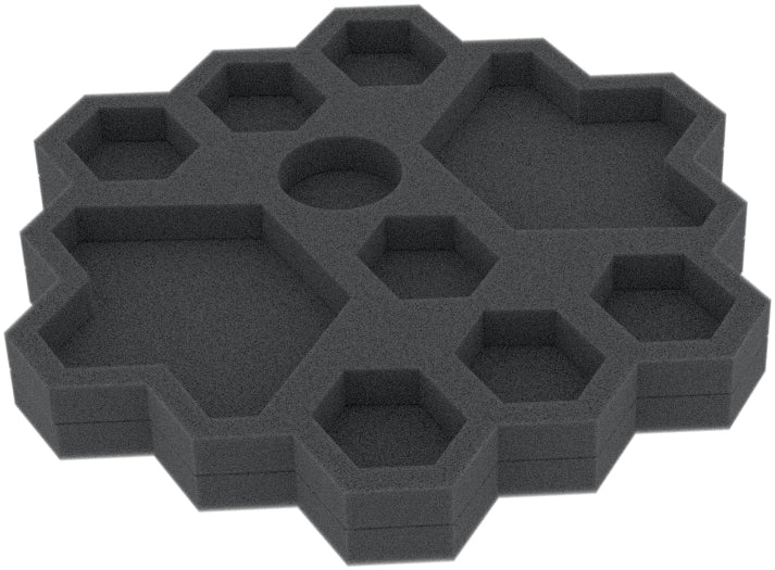 This custom insert will hold various components of the Gaia project board game. It features 10 compartments for markers and fits exactly into a Feldherr tray which was specifically designed to hold the insert.