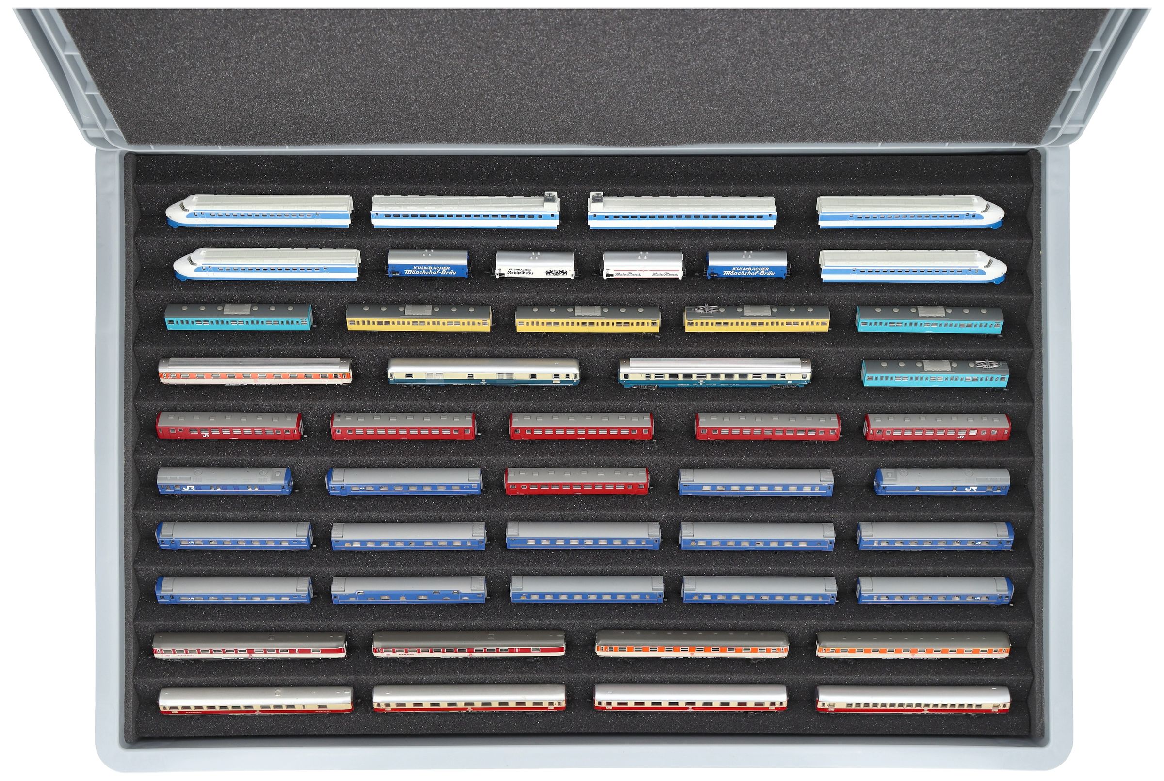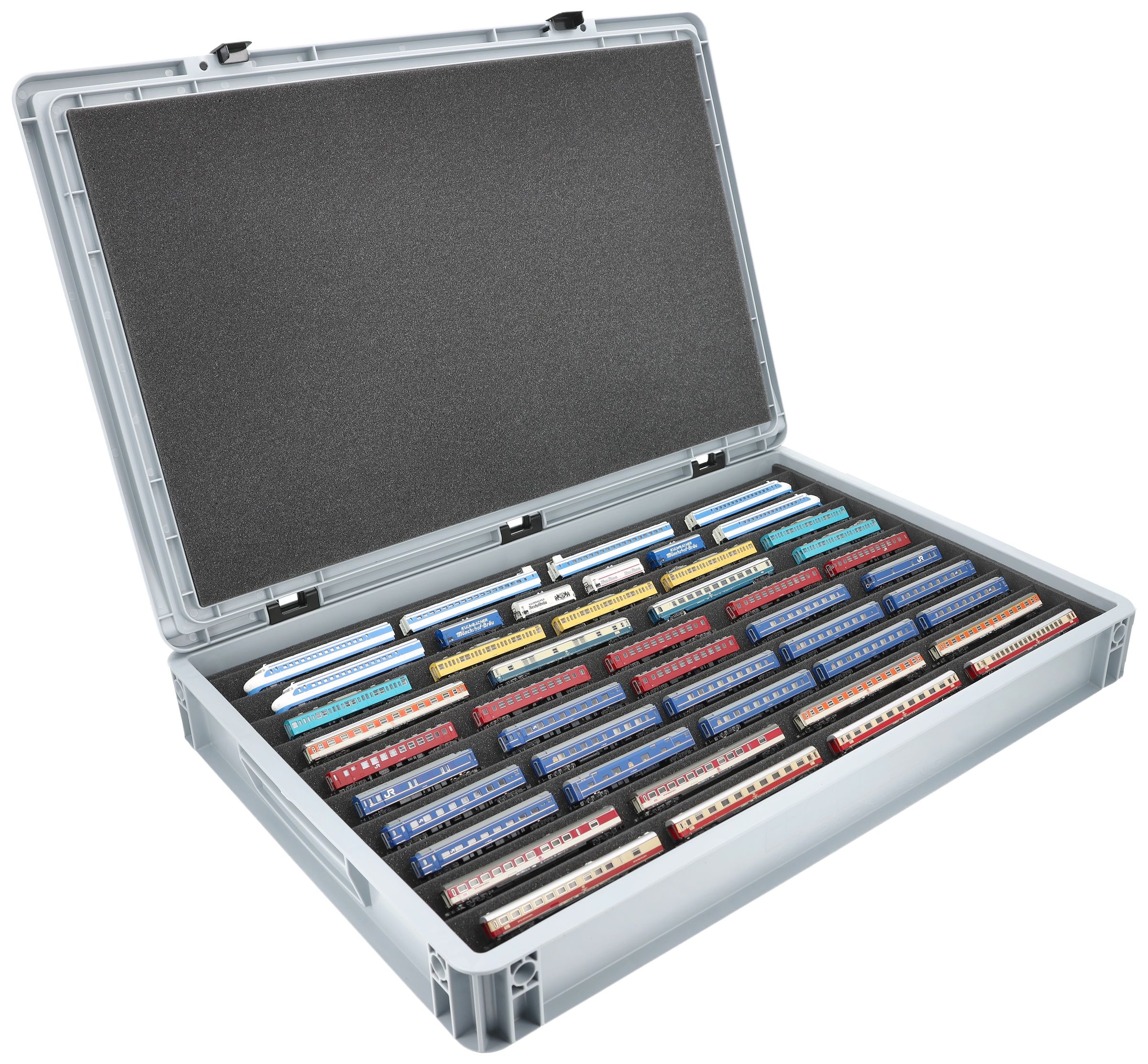 Ten compartments, tailor-made for model railways in gauge Z, offer your locomotives and wagons reliable protection for storage and transport.